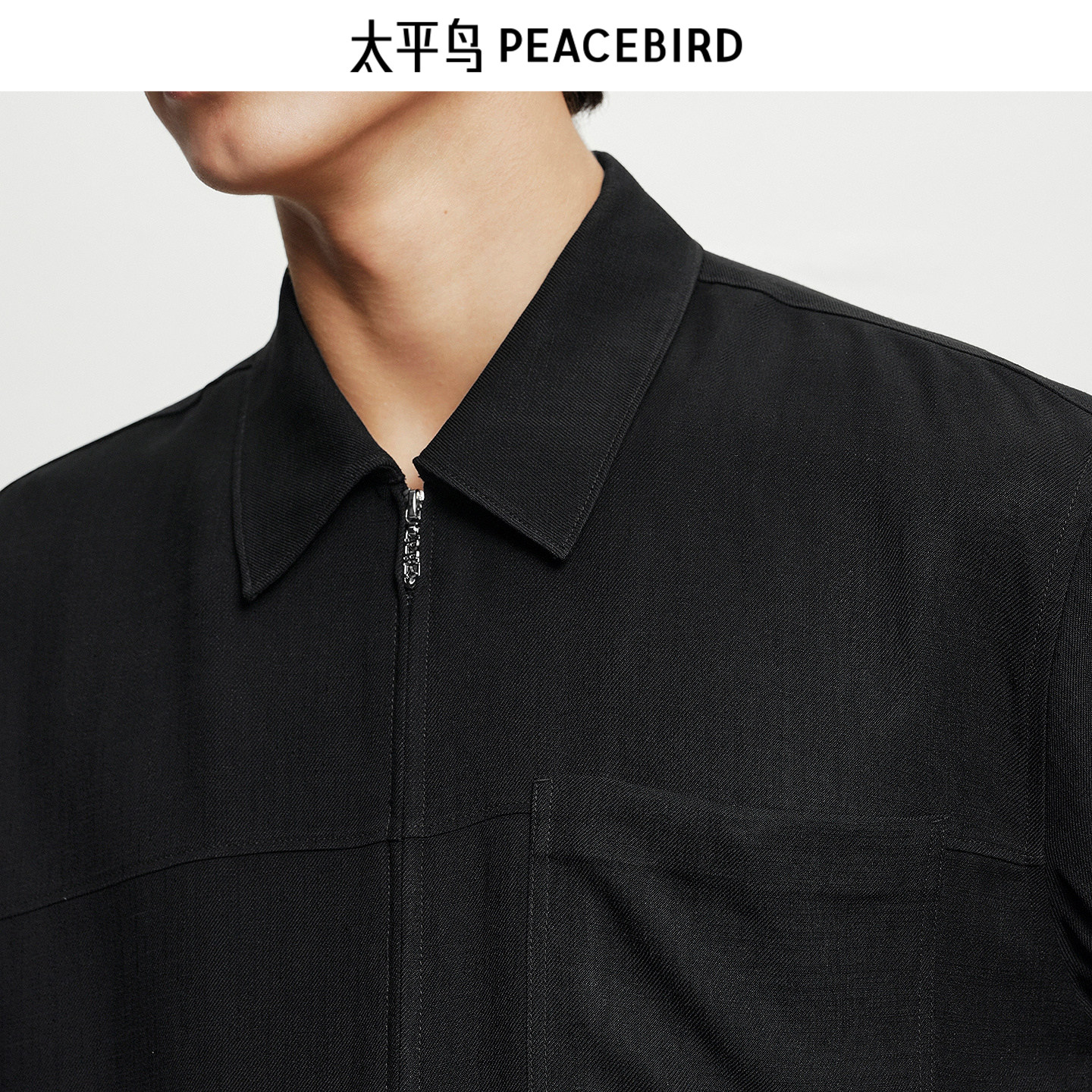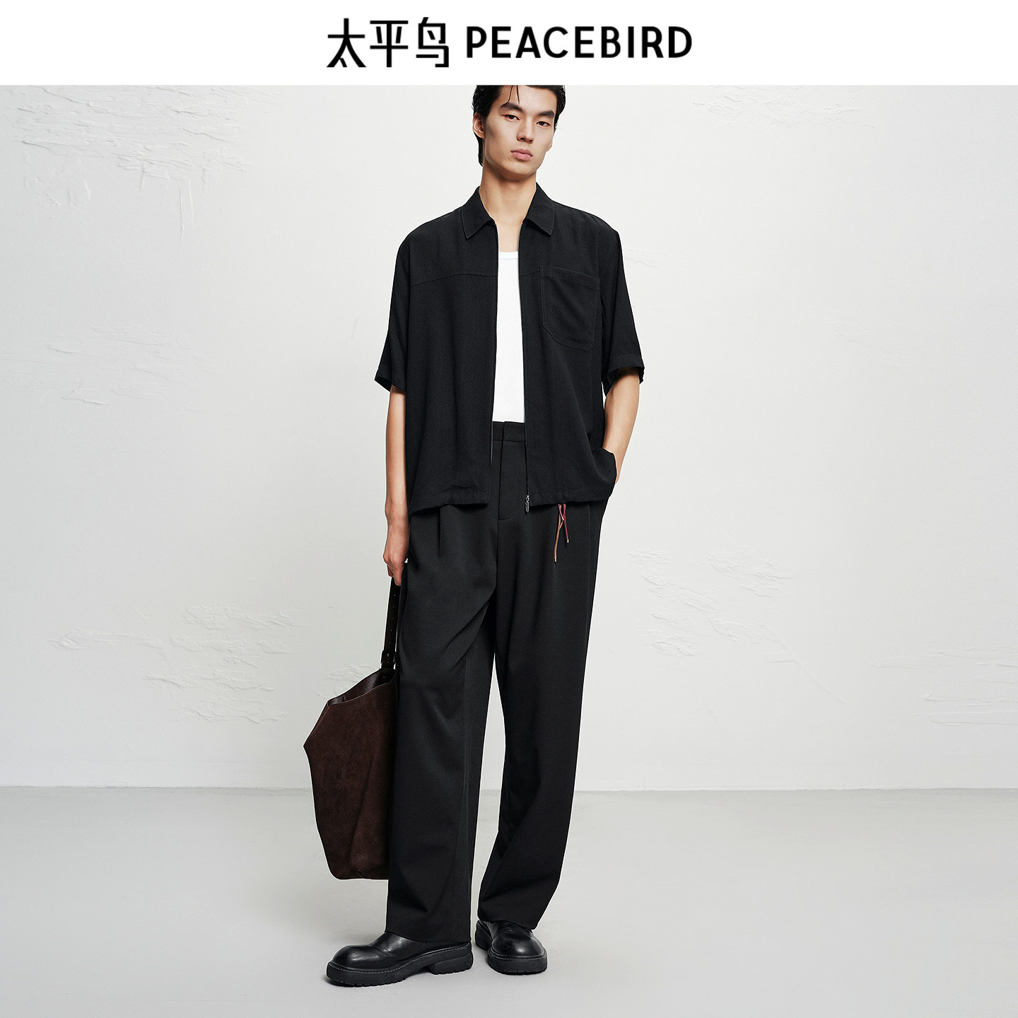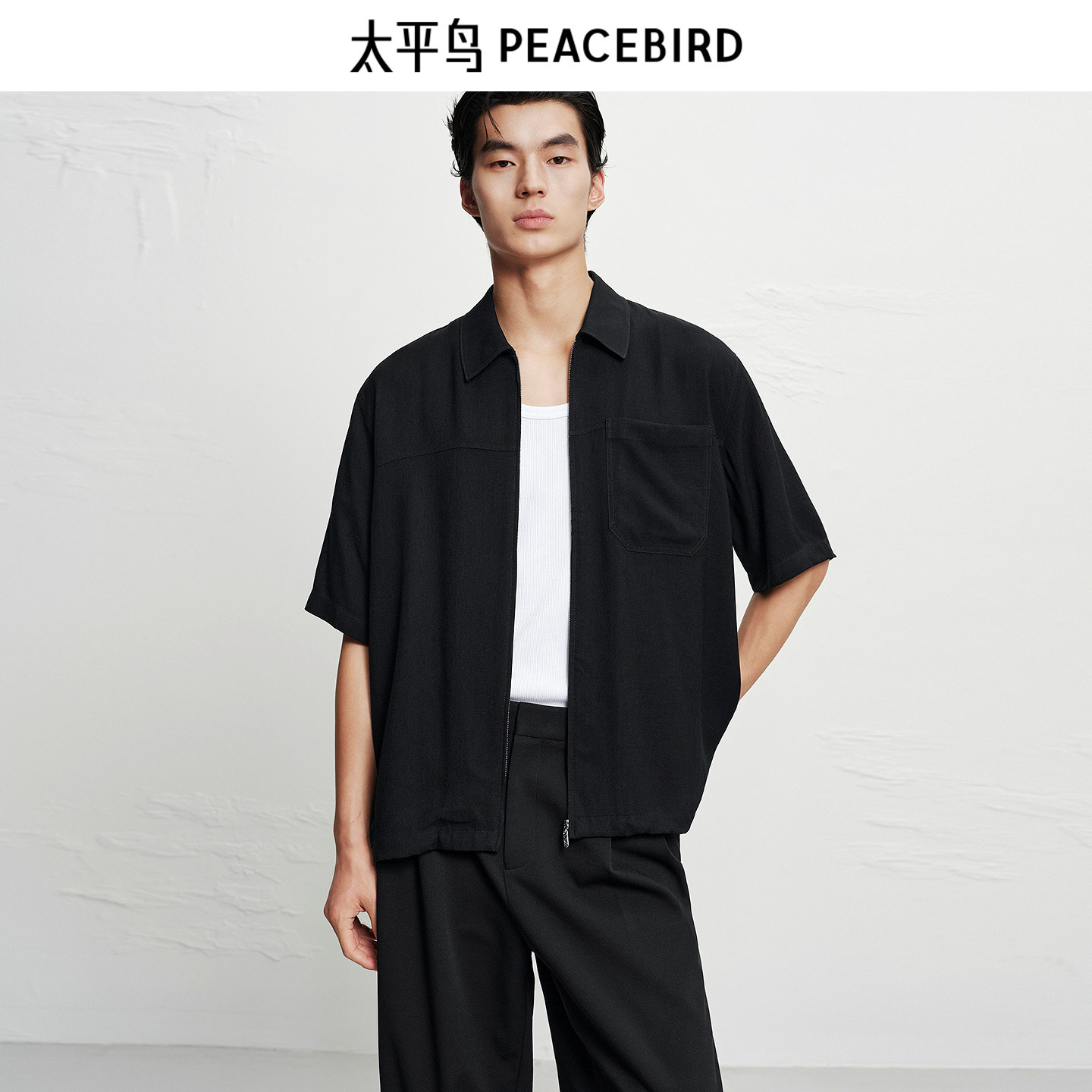【商场同款】太平鸟男装 短袖衬衣黑色宽松秋季新款衬衫B1CJF3197