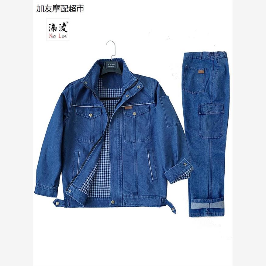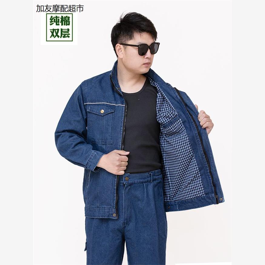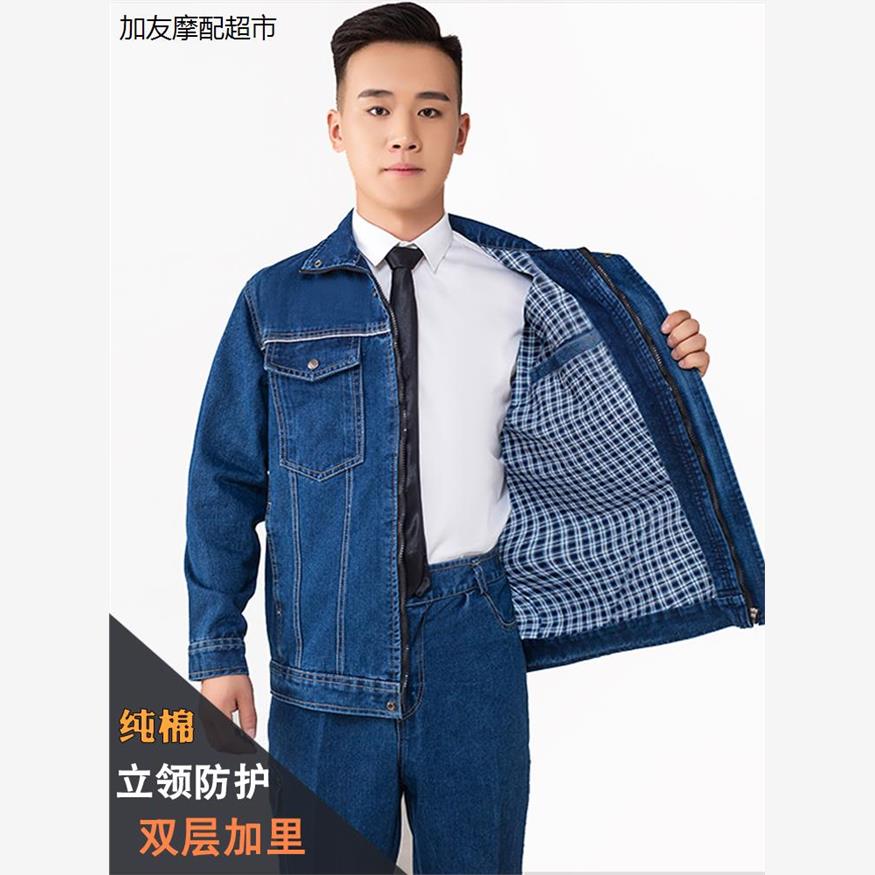 纯棉牛仔工作服套装男双层立领电焊工服加厚防烫工厂电工劳保服春