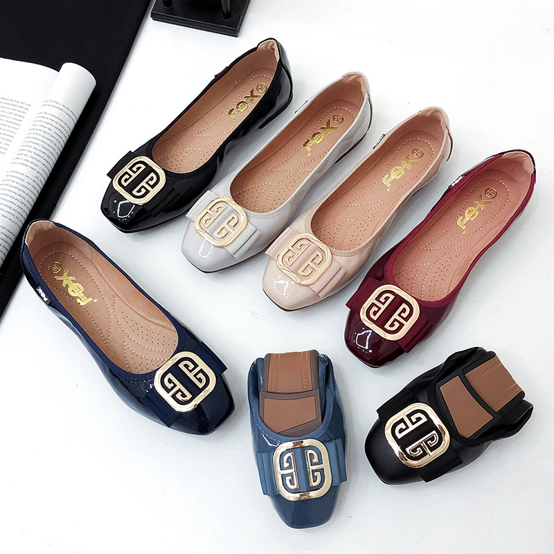 厂家直销代发百搭方头女鞋2025春夏季新款平底单鞋豆豆鞋蛋卷鞋