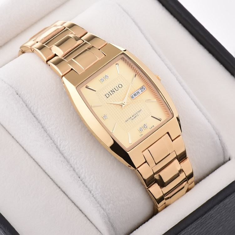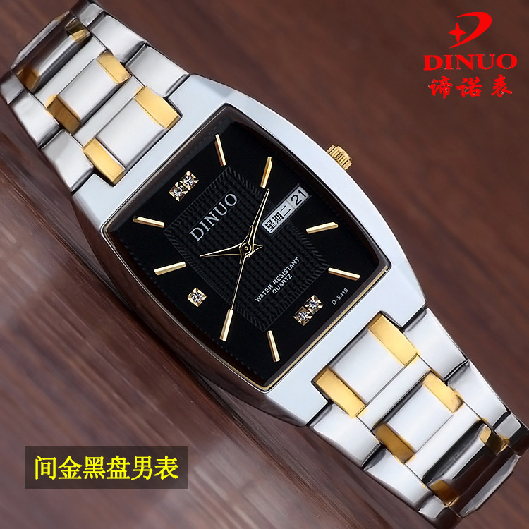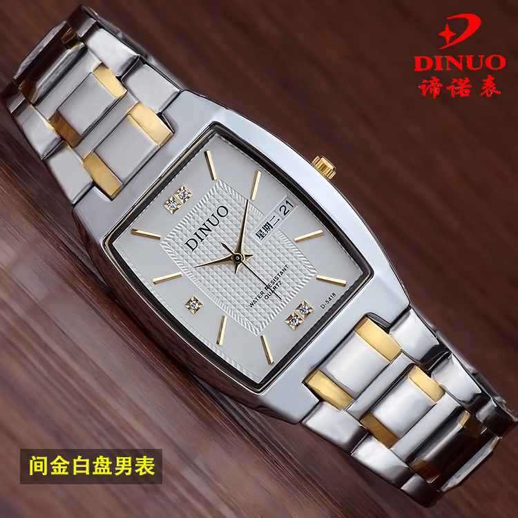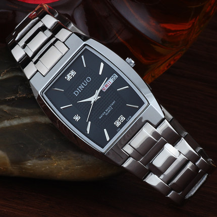 正品DINUO谛诺手表 男士双历石英表 超薄长方形防水腕表 商务男表