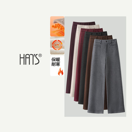 韩氏伊人窄版阔腿裤女2025新款冬季加绒休闲小个子高端羊毛呢裤子
