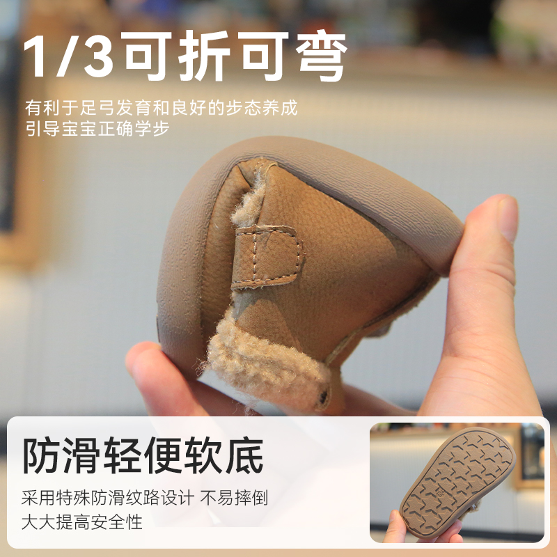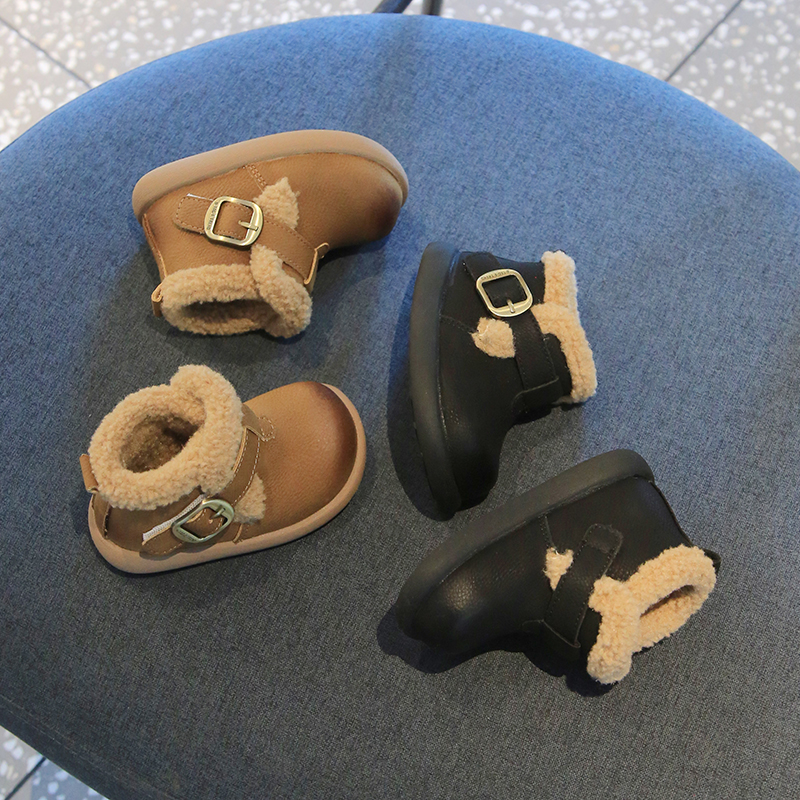 儿童雪地靴羊羔绒宝宝棉鞋冬季新款加绒棉靴女童短靴子软底婴儿鞋