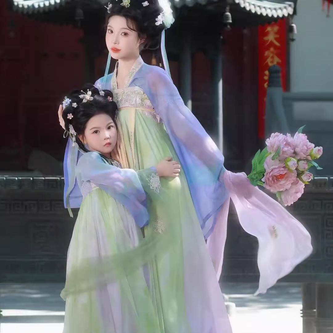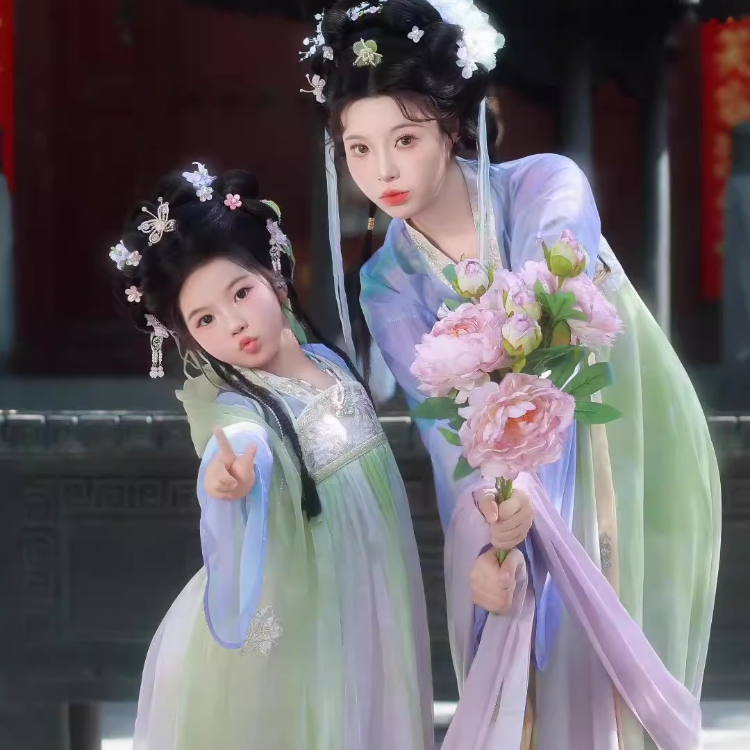 寻香三千亲子汉服古风刺绣襦裙套装母女装儿童春秋连衣裙中秋表演