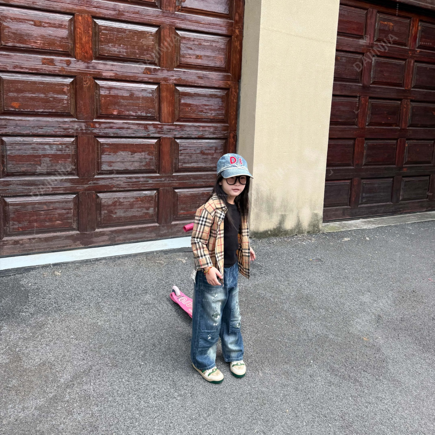 25秋冬定制系列巨重工潮酷软牛仔复古蓝磨破设计感儿童软牛仔裤