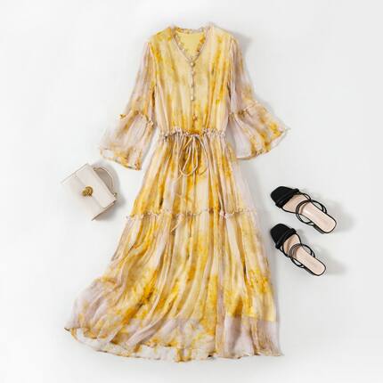 芭碧尔女装真丝连衣裙OL气质海边度假桑蚕丝沙滩长裙81039