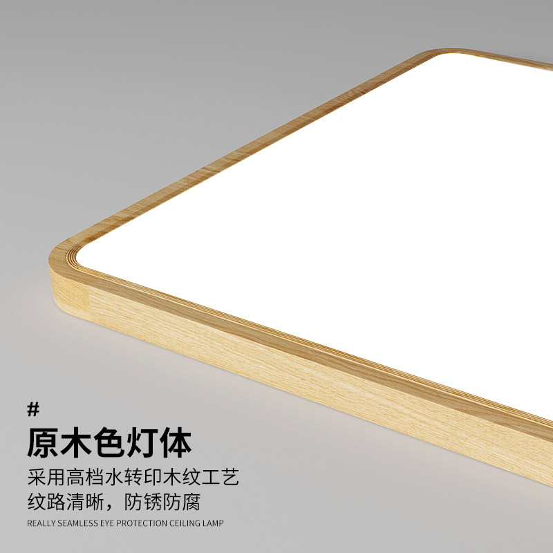 爱多辉日式原木客厅吸顶灯木纹色新中式全光谱护眼超薄无缝方形灯