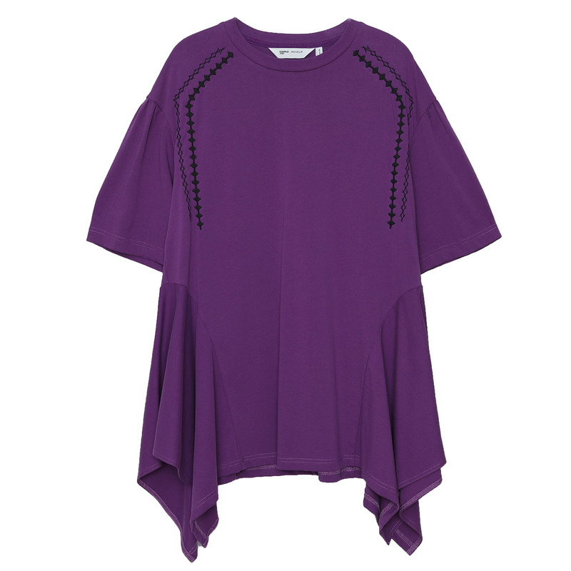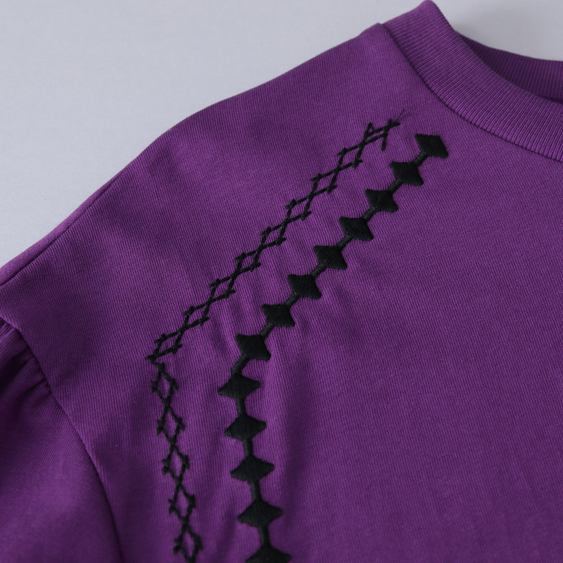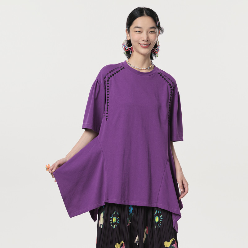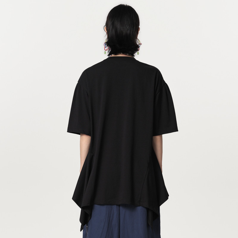 MOVEUP幻走2024春季新款.FUN系列肩部绣花设计师纯棉中长款T恤女