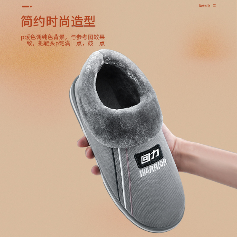 回力棉拖鞋男士秋冬季厚底包跟家居保暖室内家用防滑加厚加绒棉鞋