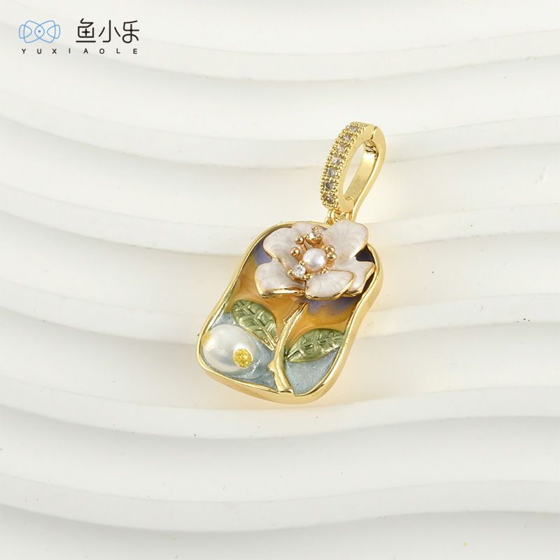 铜镀真金天然珍珠油画风花朵吊坠