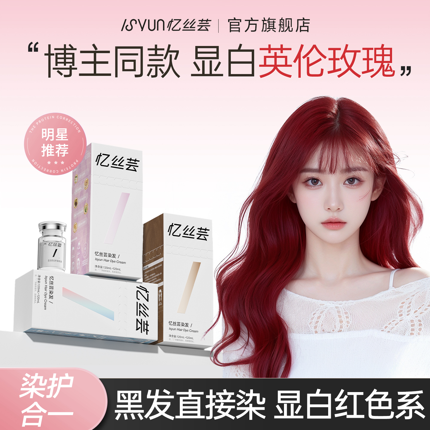 忆丝芸英伦玫瑰染发膏剂挑染树莓红色焦糖荔枝粉棕植物官方正品女