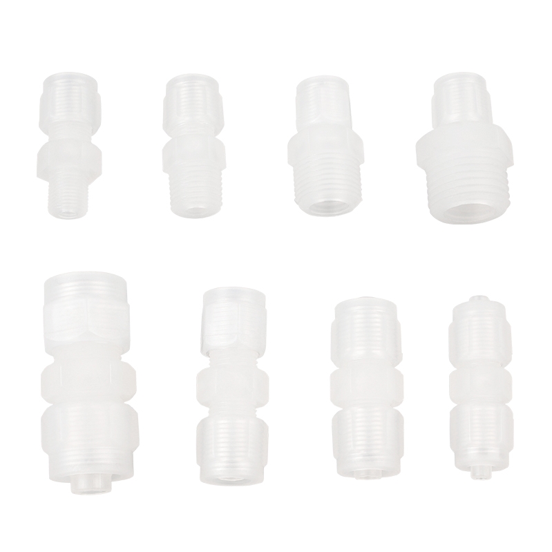 PP塑料气动快拧接头直通外螺纹锁扣PC8耐腐蚀耐酸碱隔板PU6包邮