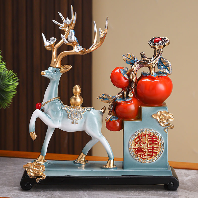 新中式事事如意柿子摆件招财鹿客厅玄关红酒柜装饰品乔迁开业礼物