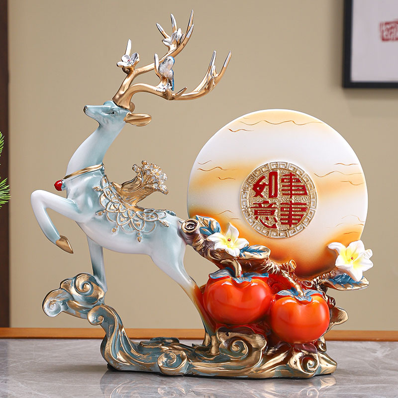 事事如意酒柜客厅招财鹿摆件树脂