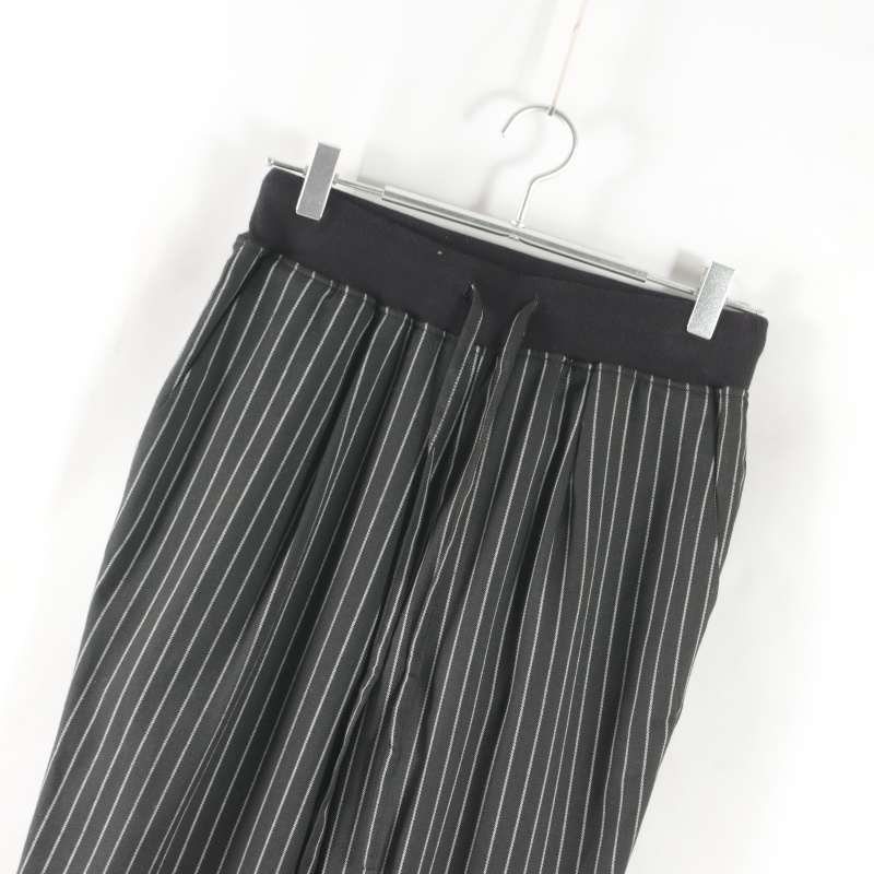 松紧高腰日单长裤条纹休闲裤