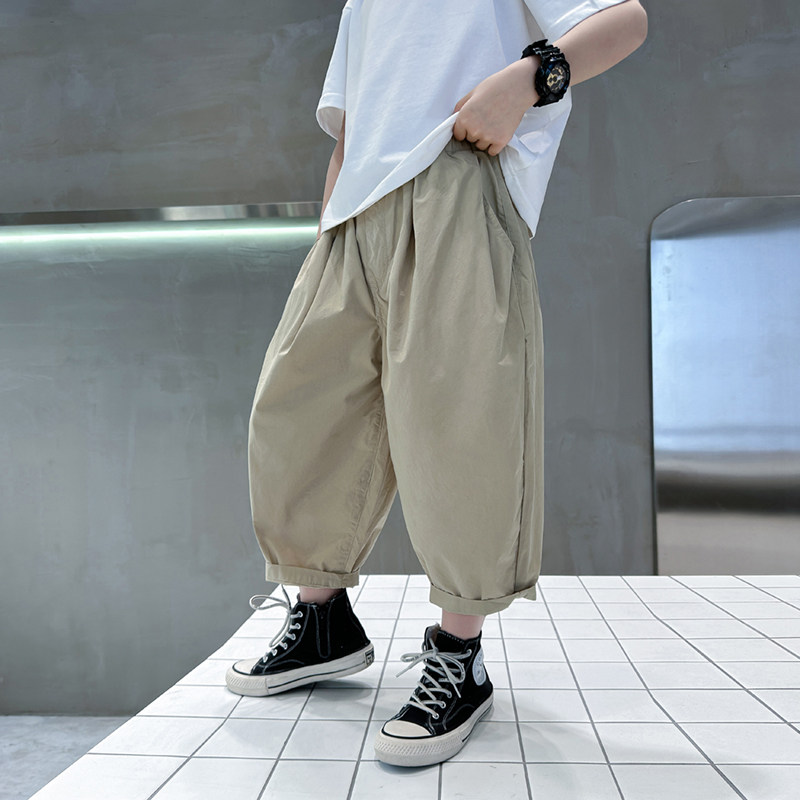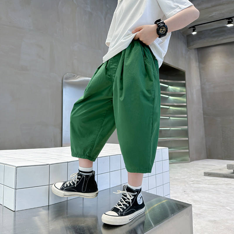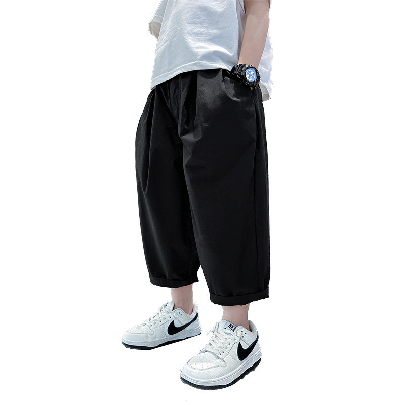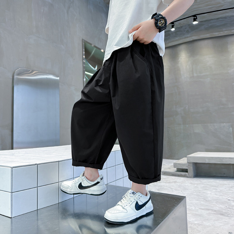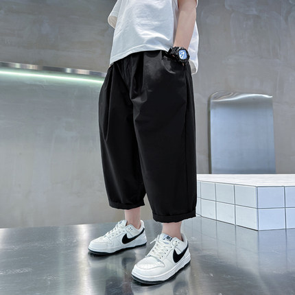 男童夏装黑色七分工装短裤2023新款休闲儿童装男孩夏季宽松裤子潮