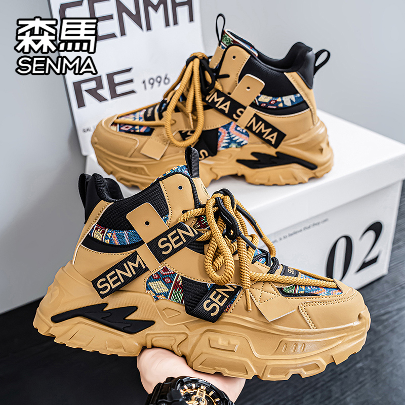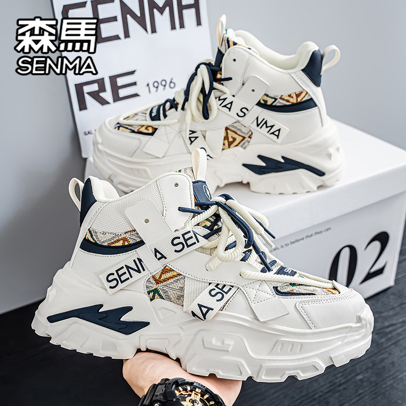 森马男鞋秋季潮牌百搭高帮青少年运动休闲跑步厚底增高小白老爹鞋
