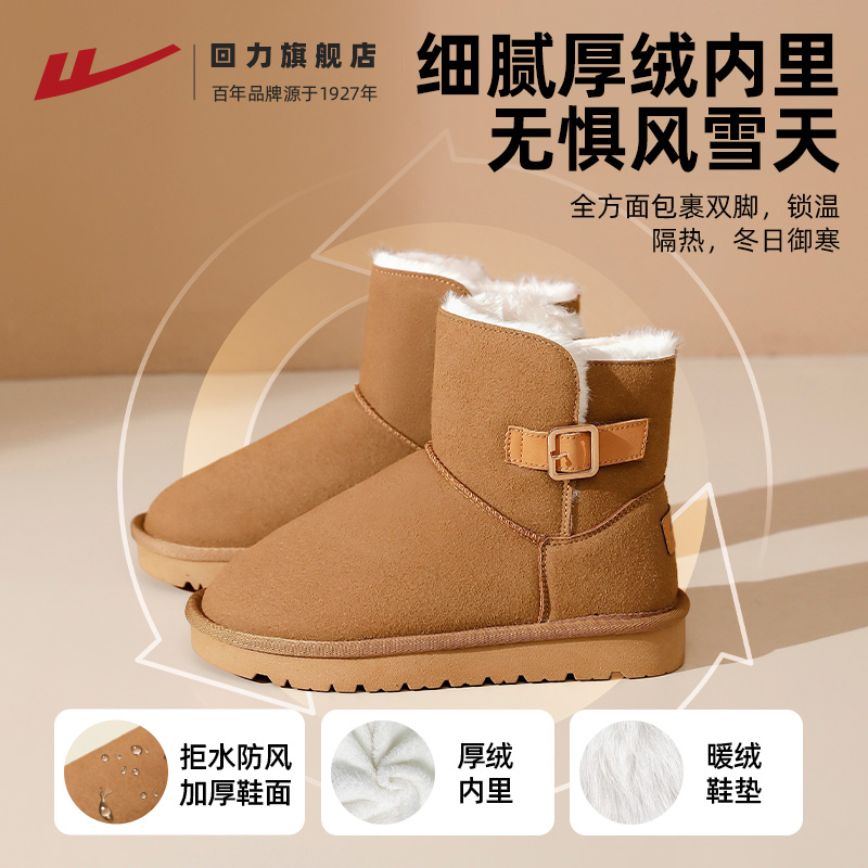回力雪地靴女2025冬季新款棉鞋加厚保暖棕色雪地棉靴东北靴子短筒