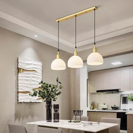 新中式全铜现代简约餐厅吊灯三头单头温馨浪漫水晶灯卧室床头玄关
