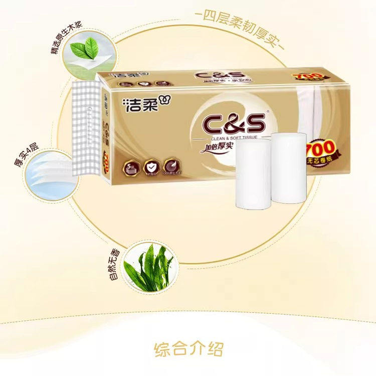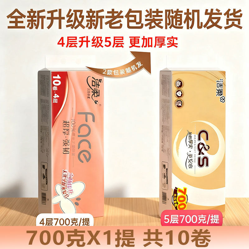 洁柔卷纸无芯立体压花长棒卫生纸巾700克4提实惠家用装厕纸学生用