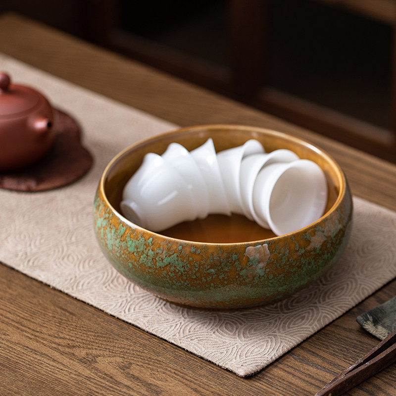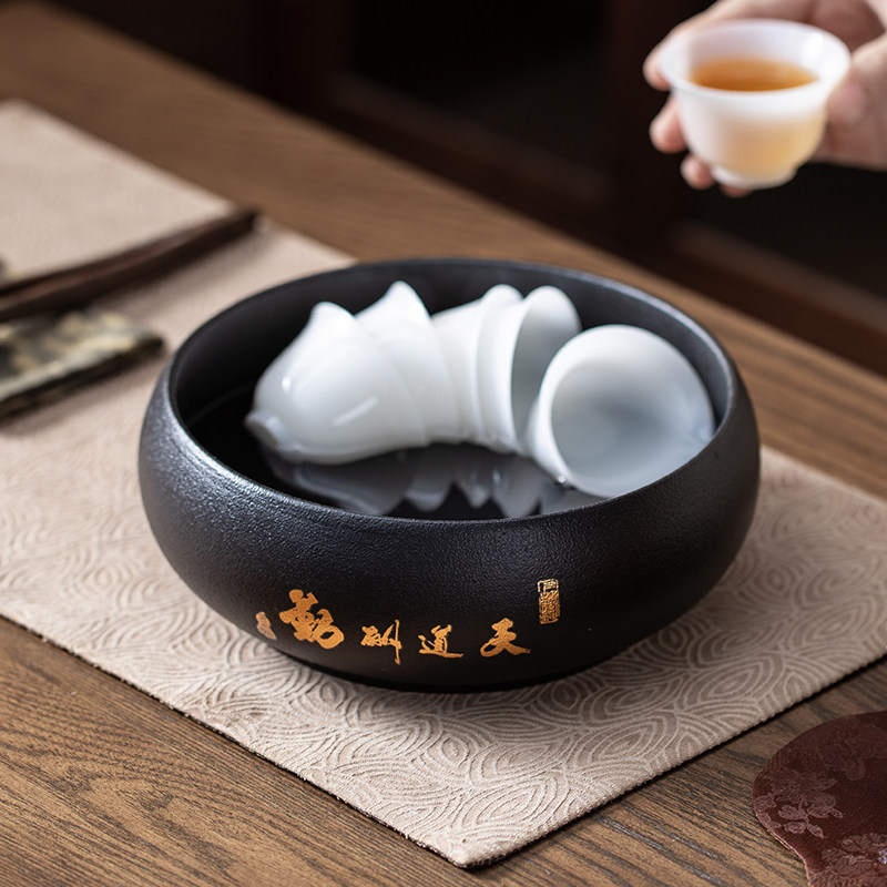 陶瓷茶洗茶渣缸废水桶家用办公烟灰缸大容量带过滤功夫茶道水盂