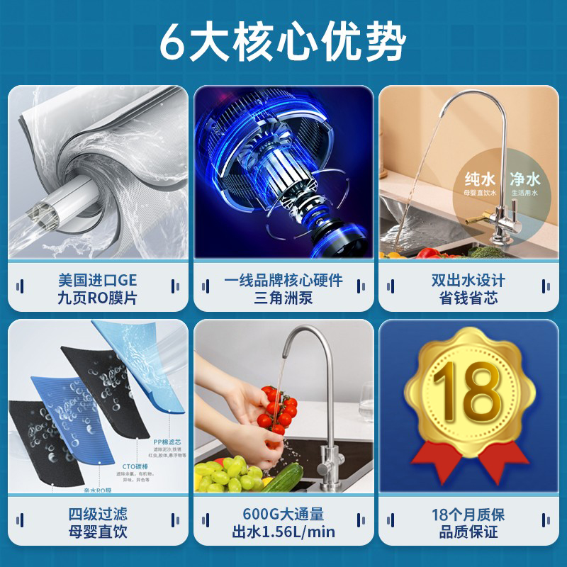 瓦伦蒂净水器ro反渗透净水机家用直饮600G厨房自来水过滤器纯水机