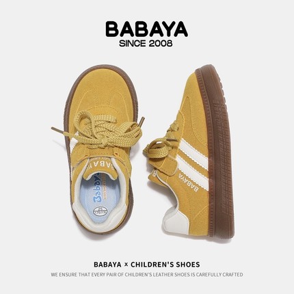 芭芭鸭女童运动鞋2025新款春秋男童休闲板鞋黄色儿童鞋子德训鞋潮