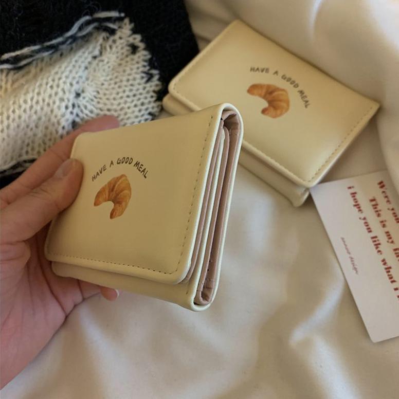 黄油吐司~ins可爱奶黄色短款钱包韩版卡通三折学生小众卡包零钱包