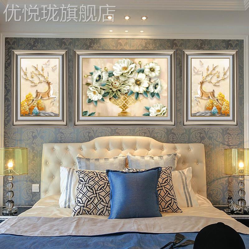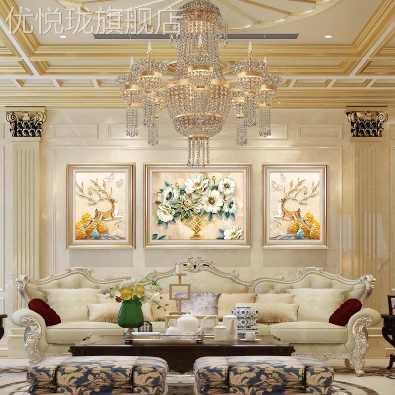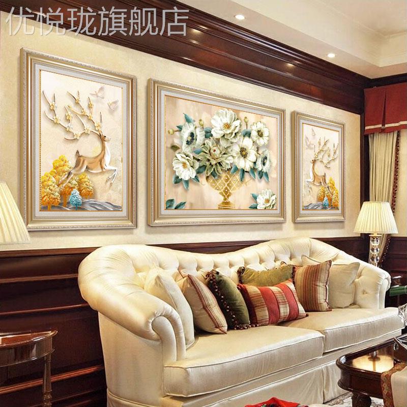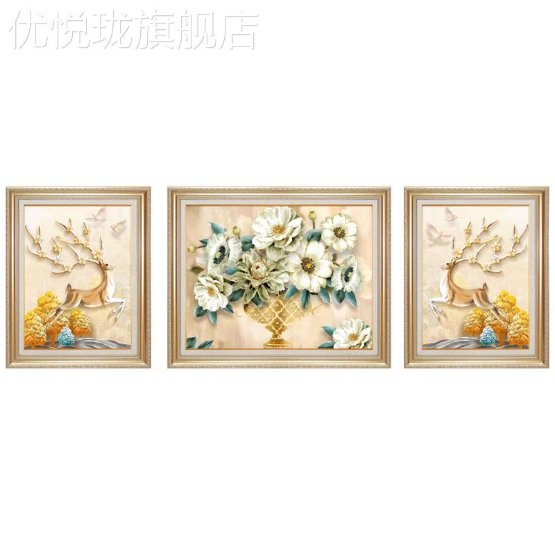 网红挂客厅装饰画欧式三联画美品式玄关壁画奶沙油风正油画发背景