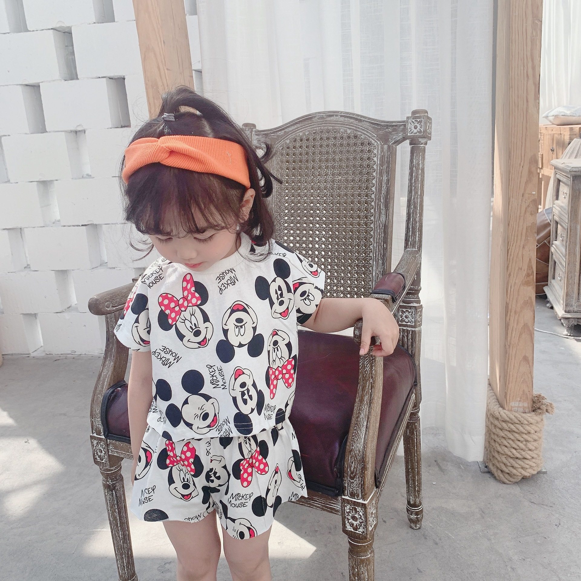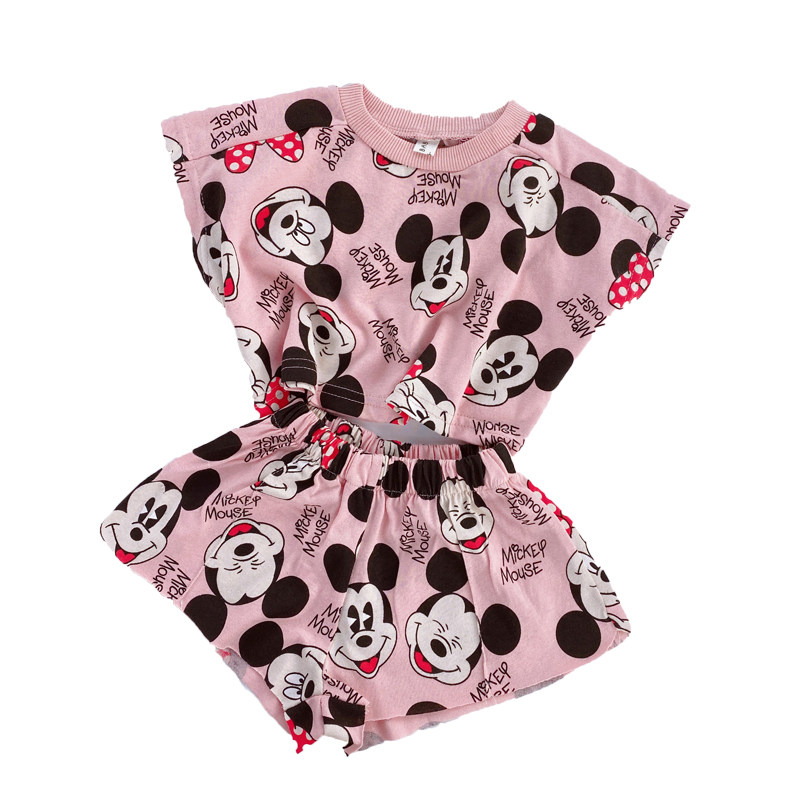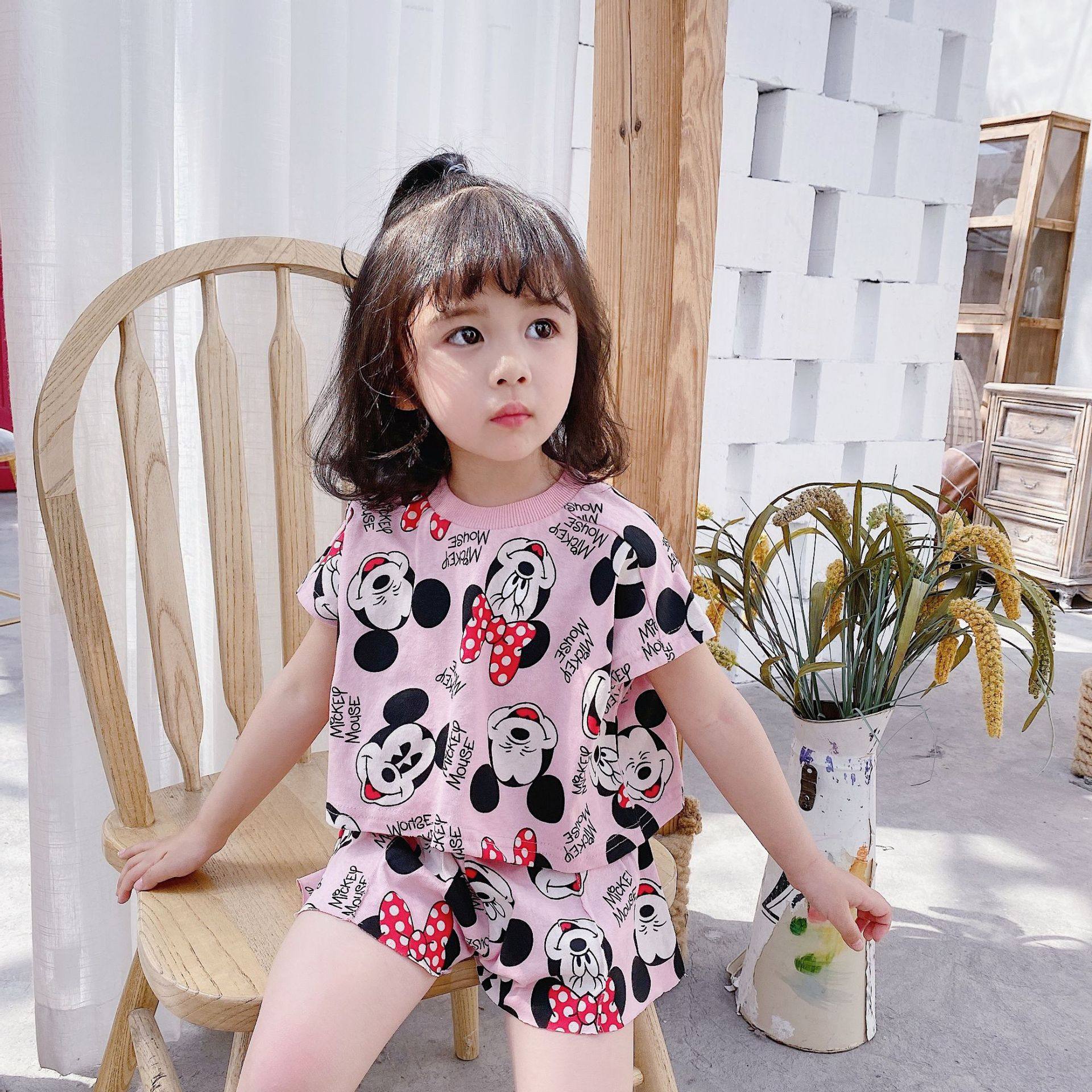 新款满印卡通女童两件套休闲2024韩版夏装短袖短裤套装洋气夏季款