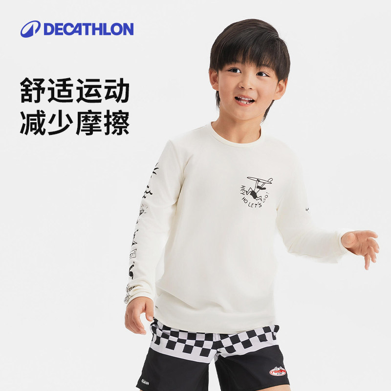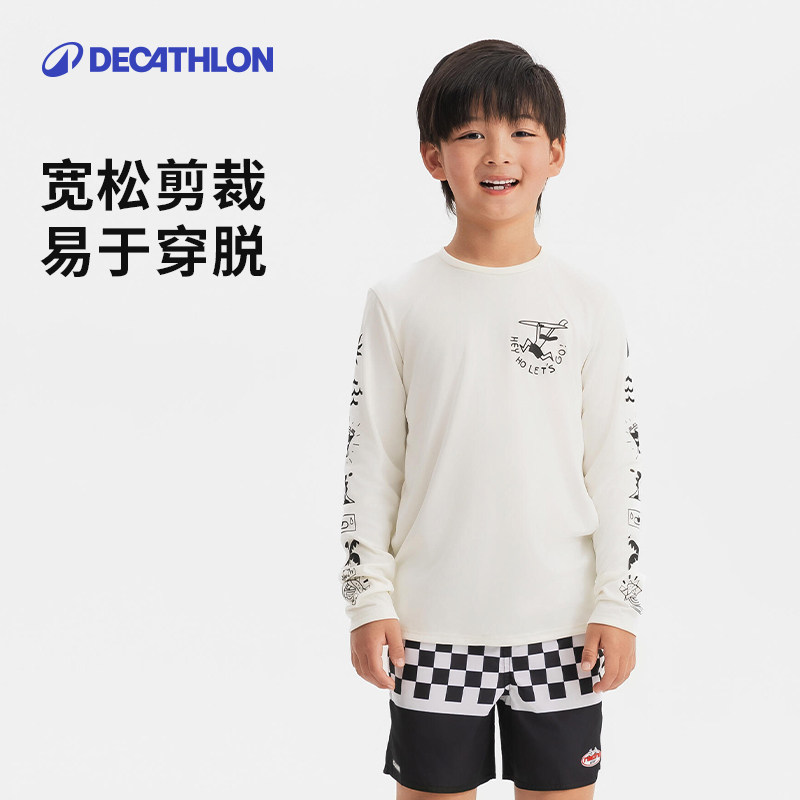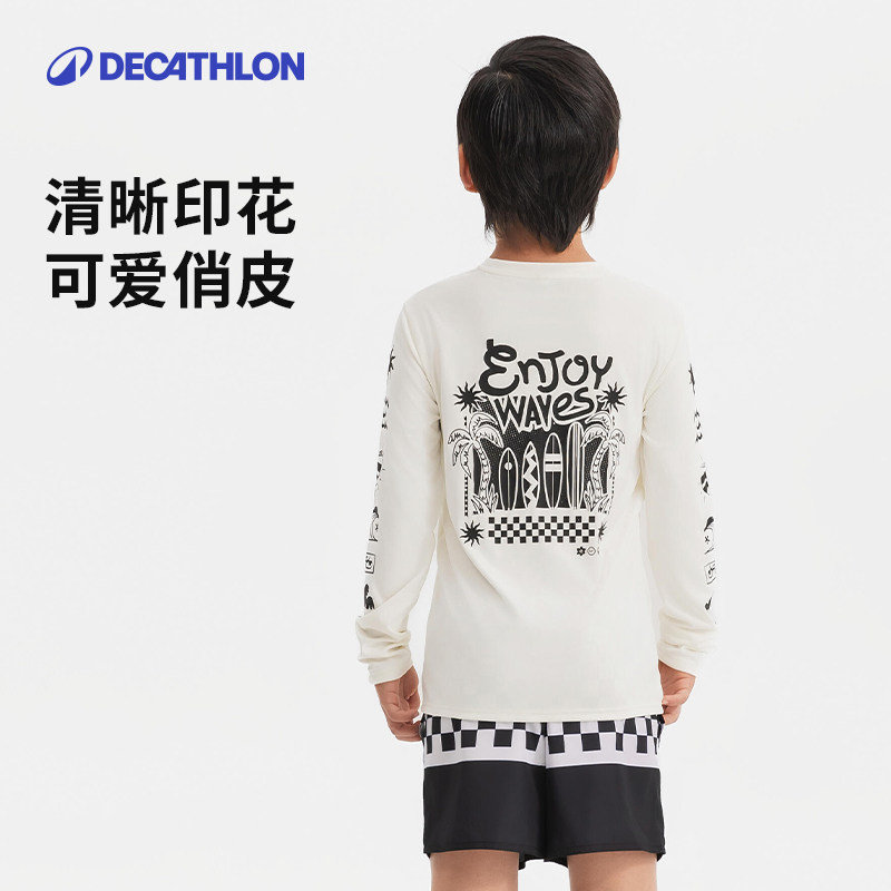 迪卡侬儿童长袖防晒T恤男童冲浪潜水度假舒适宽松运动KIDK