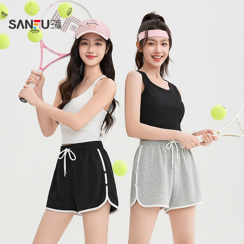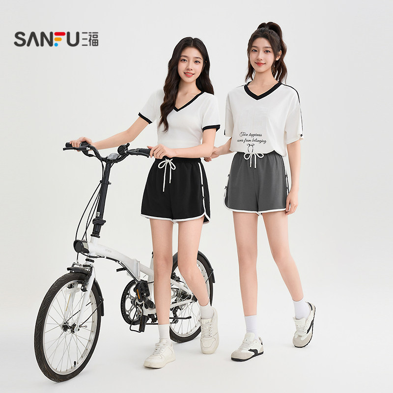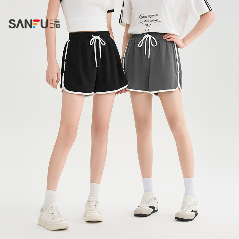 三福短裤女2026新款夏季运动风针织休闲裤小个子局部撞色裤子女装