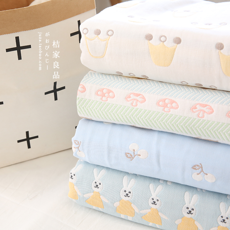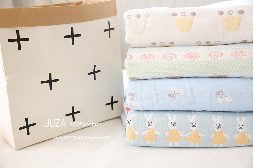 外贸六层提花纯棉纱布布料 口水巾 尿布 睡袋 围嘴 空调被面料