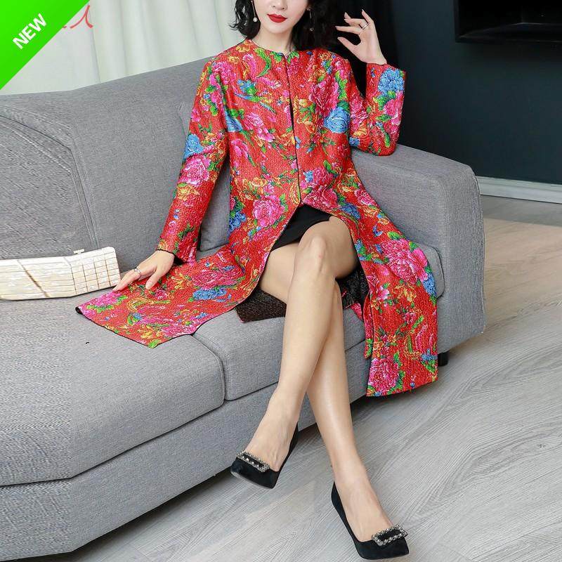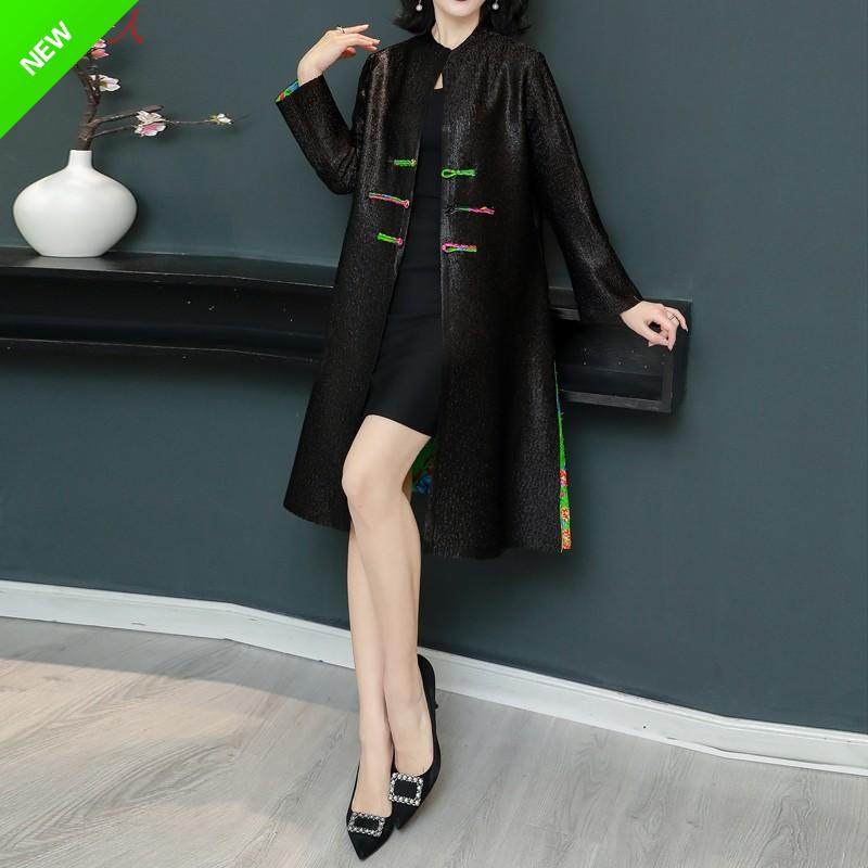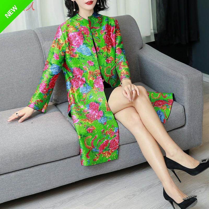 中老年女士春装新款真丝褶皱两面穿风衣大码婚礼妈妈装民族风外套
