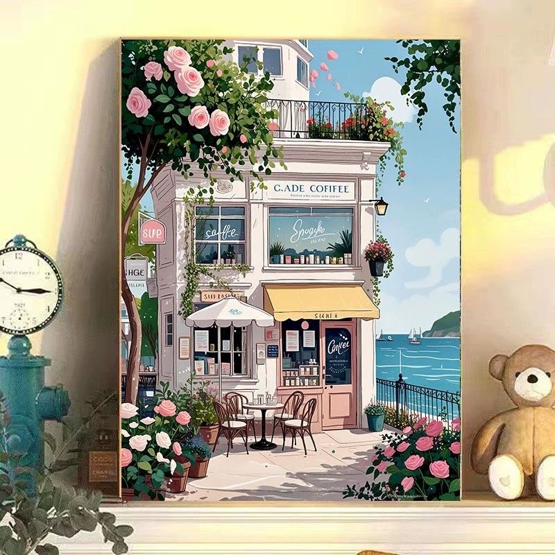 宫崎骏风景海边书店客厅装饰画治愈系餐厅咖啡厅氛围挂画床头摆画