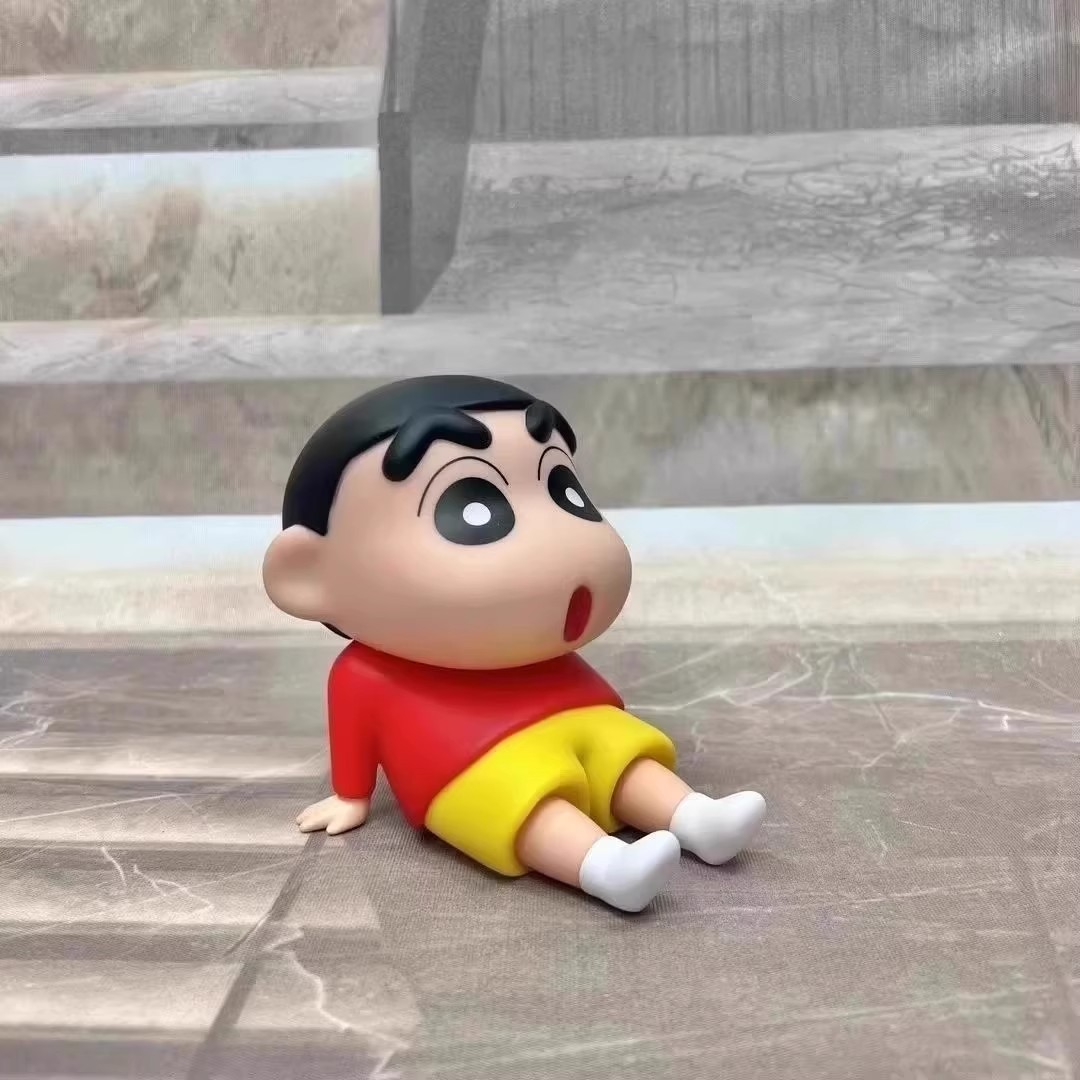 新款日漫蜡笔小新手办睡袍小新手机支架野原新之助模型公仔桌面摆件草莓熊宝可梦原创礼物潮玩小可爱懒人