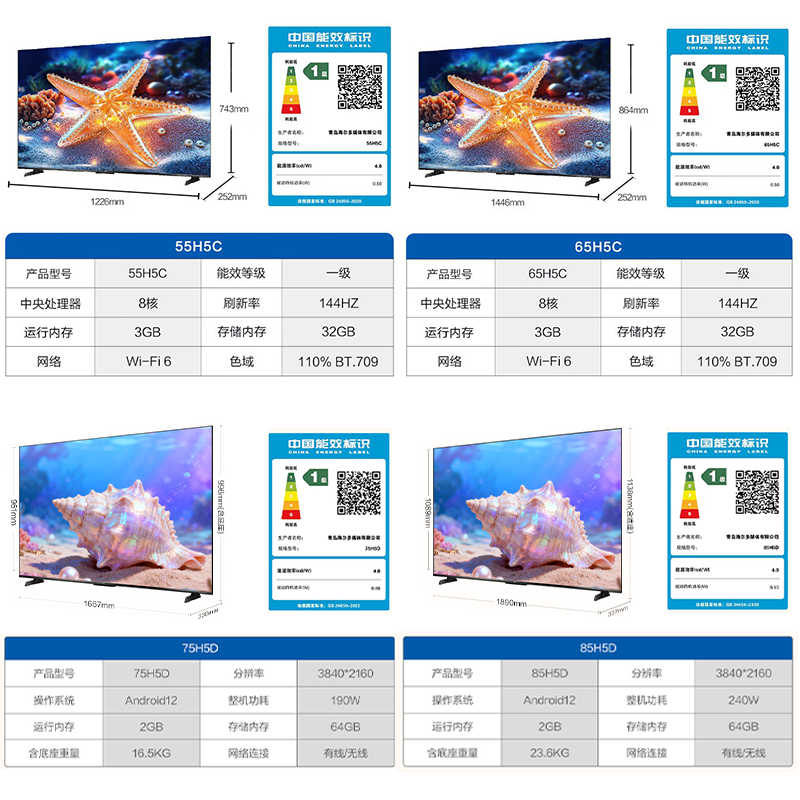 海尔55/75/85英寸 新款H5c超清高刷 WiFi6语音智能护眼液晶电视机