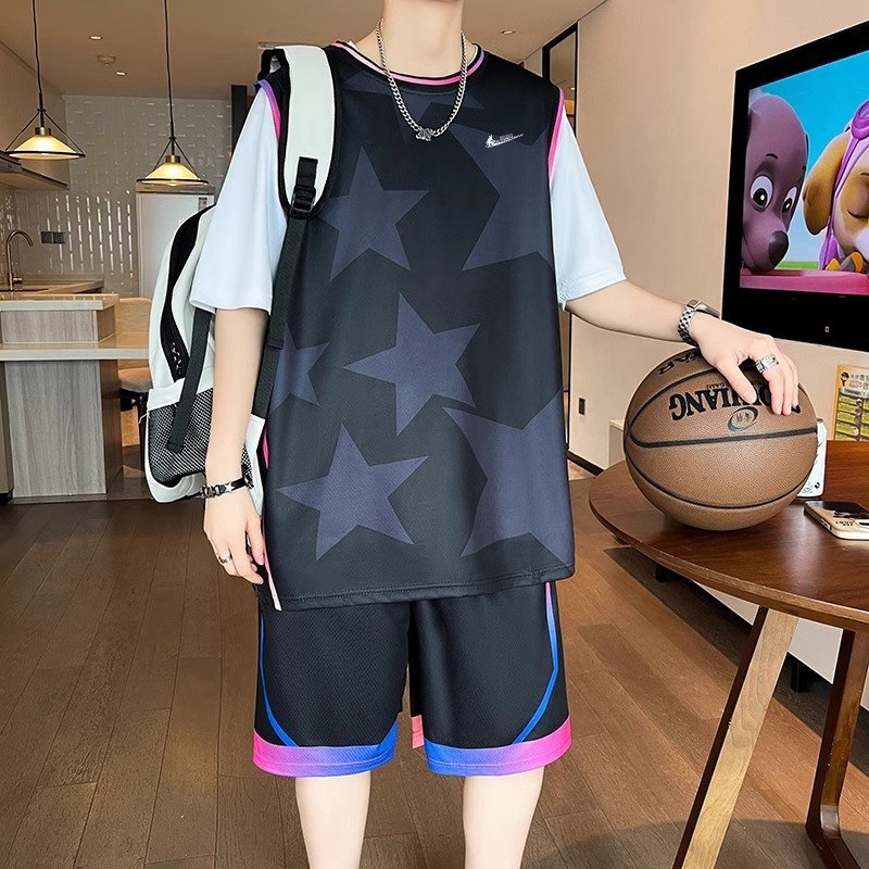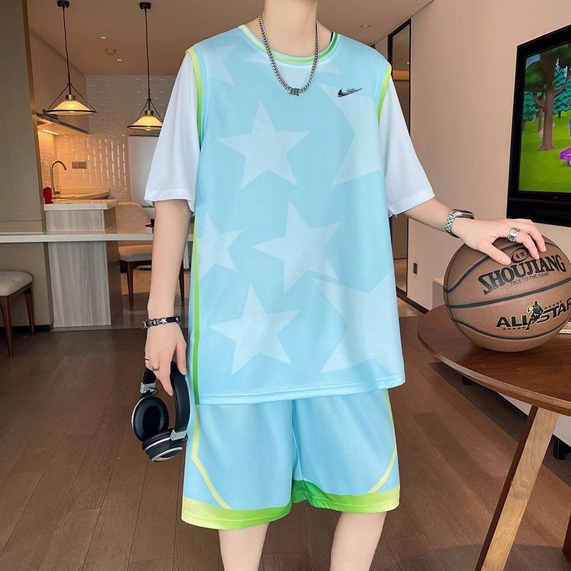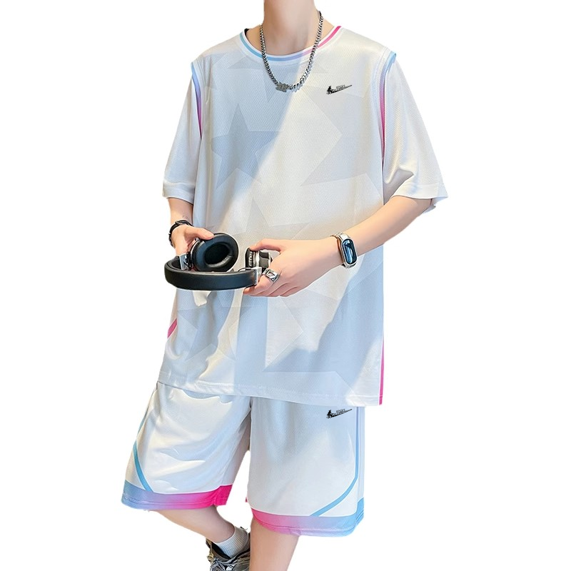 耐克顿冰丝运动服套装男夏季训练短袖t恤短裤一套青少年篮球服潮