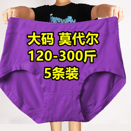5条加肥加大码胖mm200-300斤内裤女莫代尔竹纤维中老年妈妈三角裤