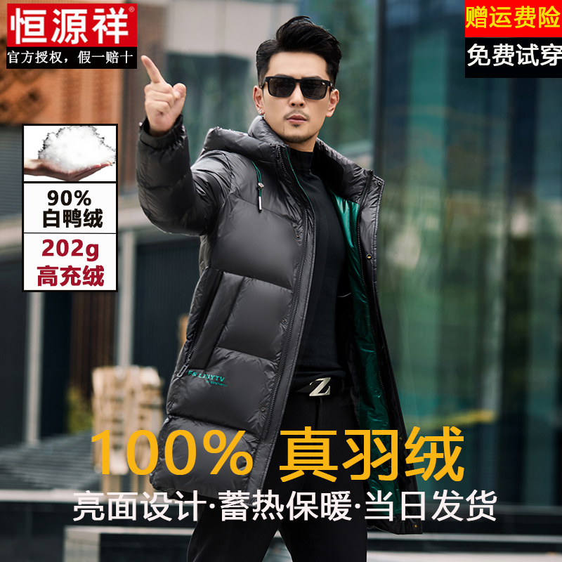 恒源祥羽绒服男款冬季加厚保暖亮面免洗防寒冬装时尚连帽短款外套