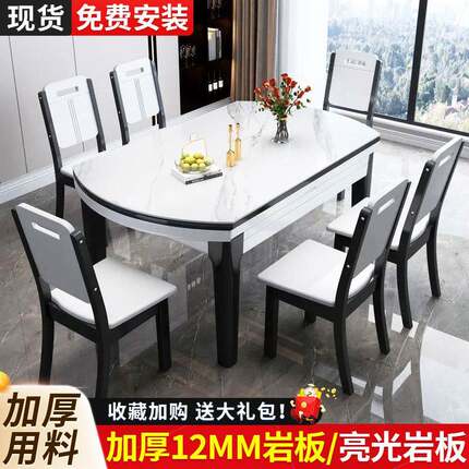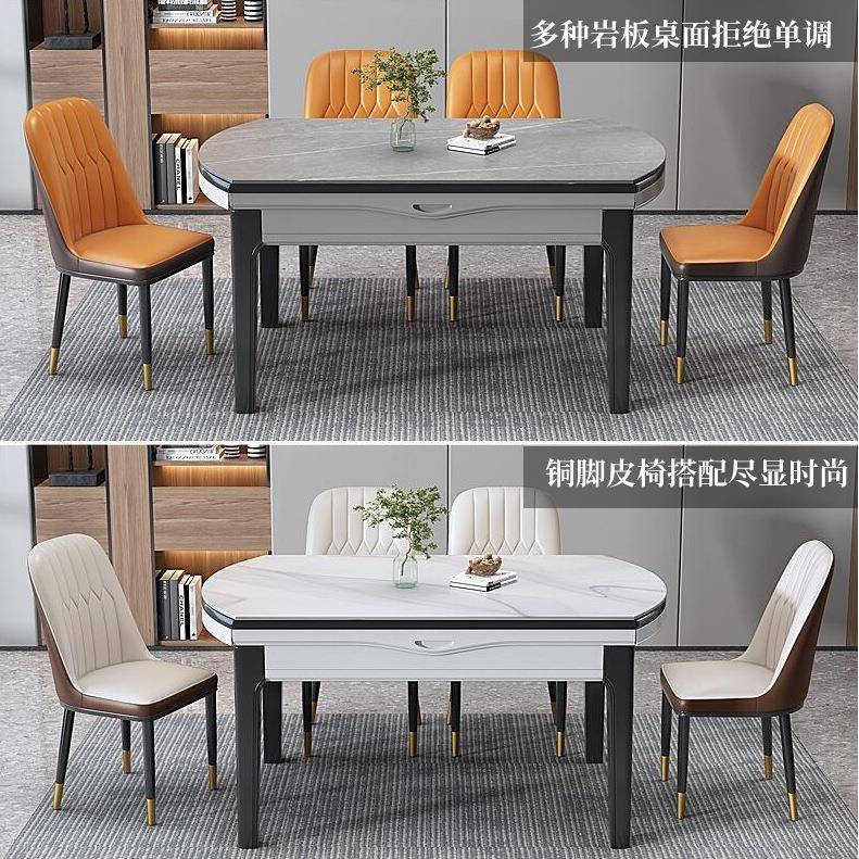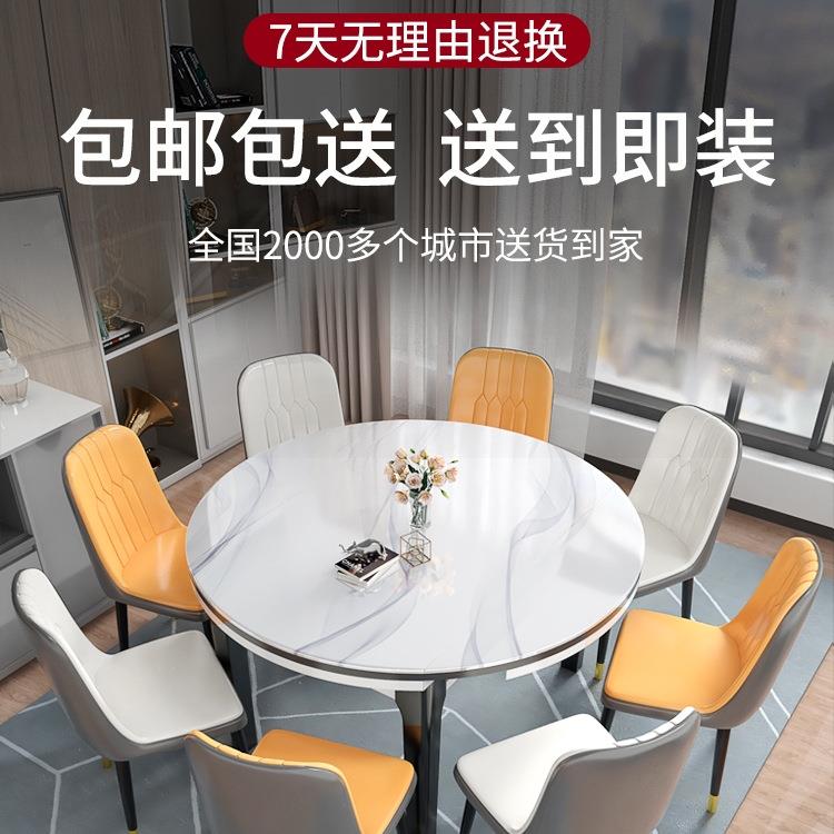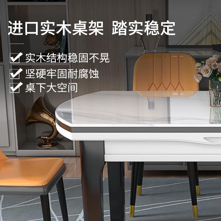 轻奢岩板餐桌椅组合实木亮光可伸缩带电磁炉圆餐桌现代简约家用桌