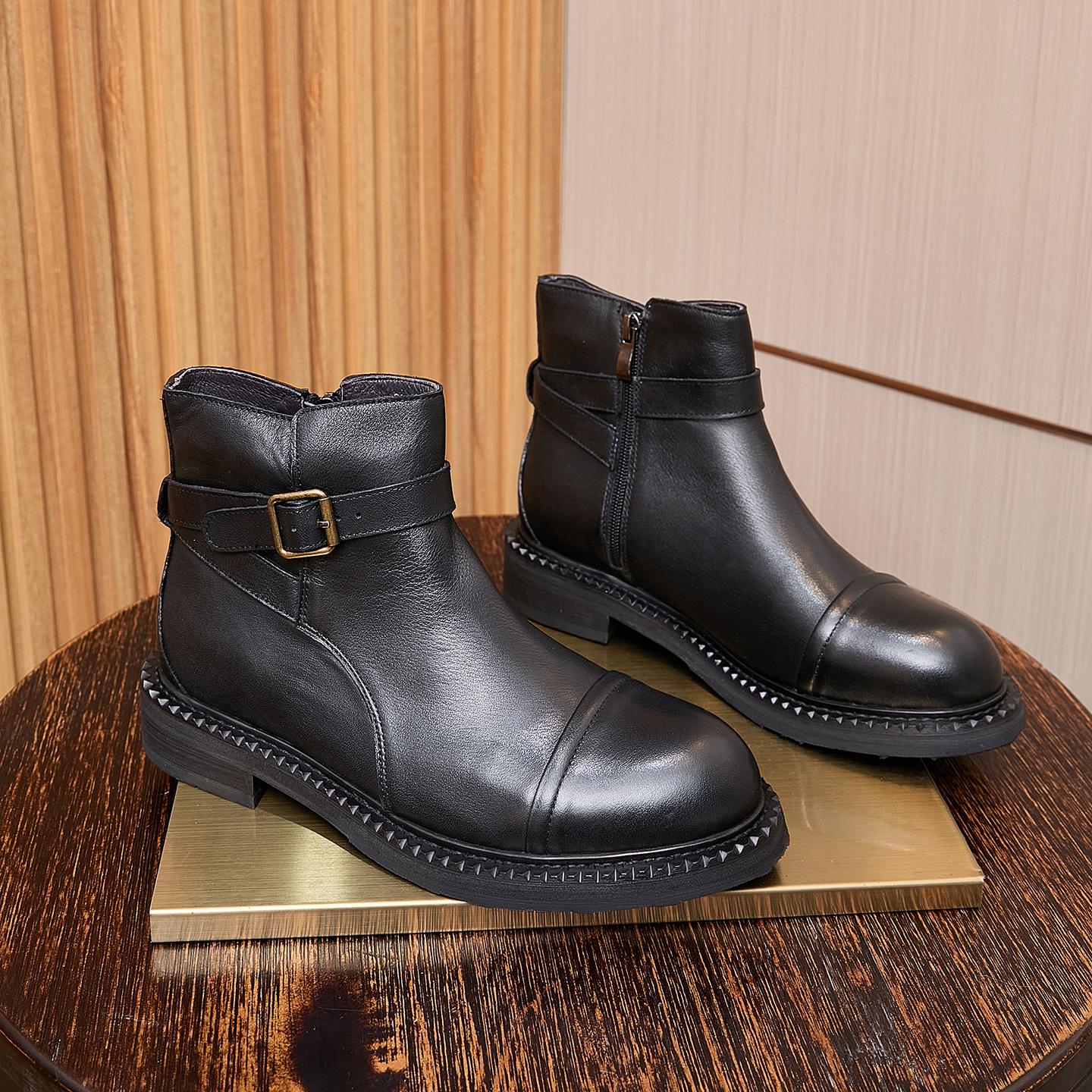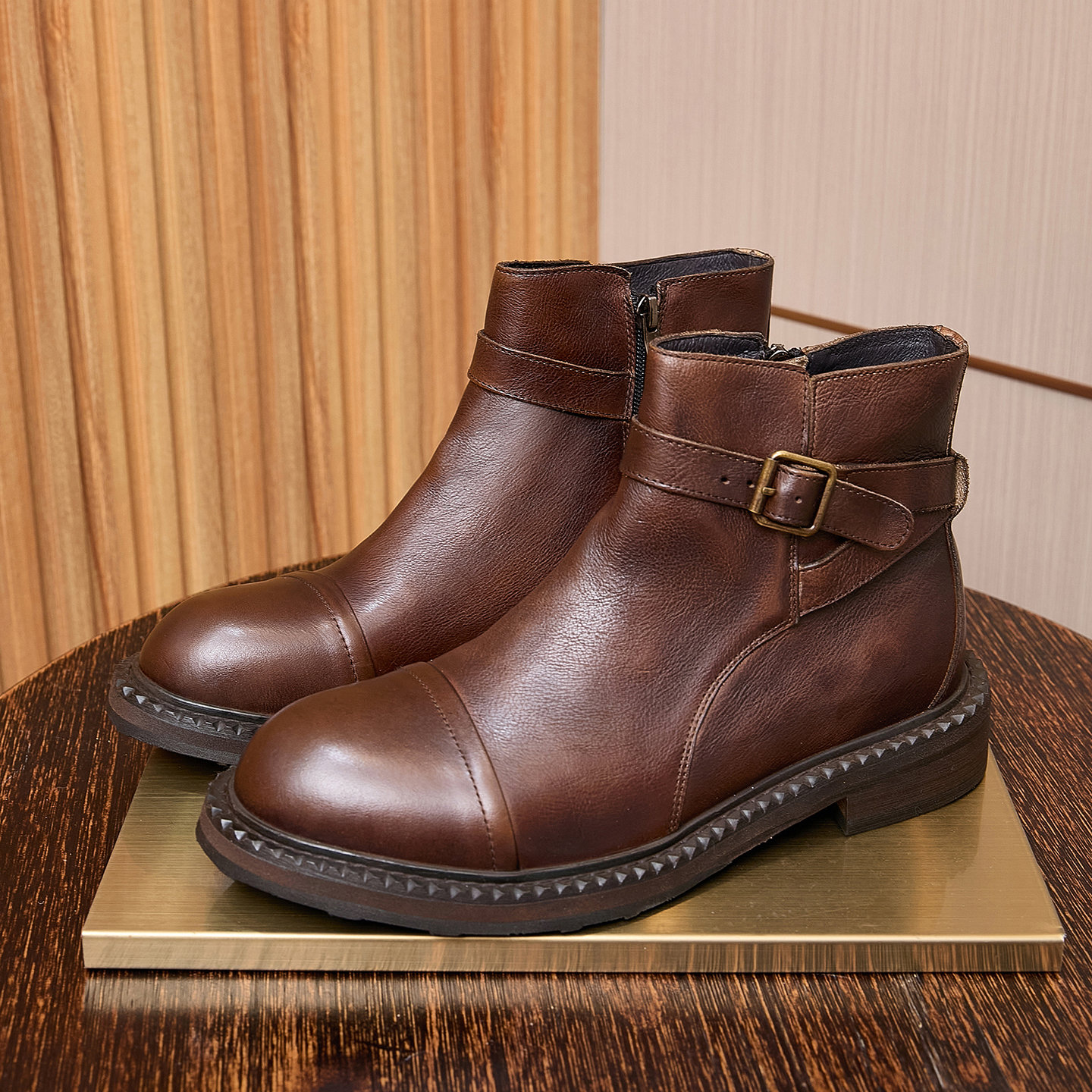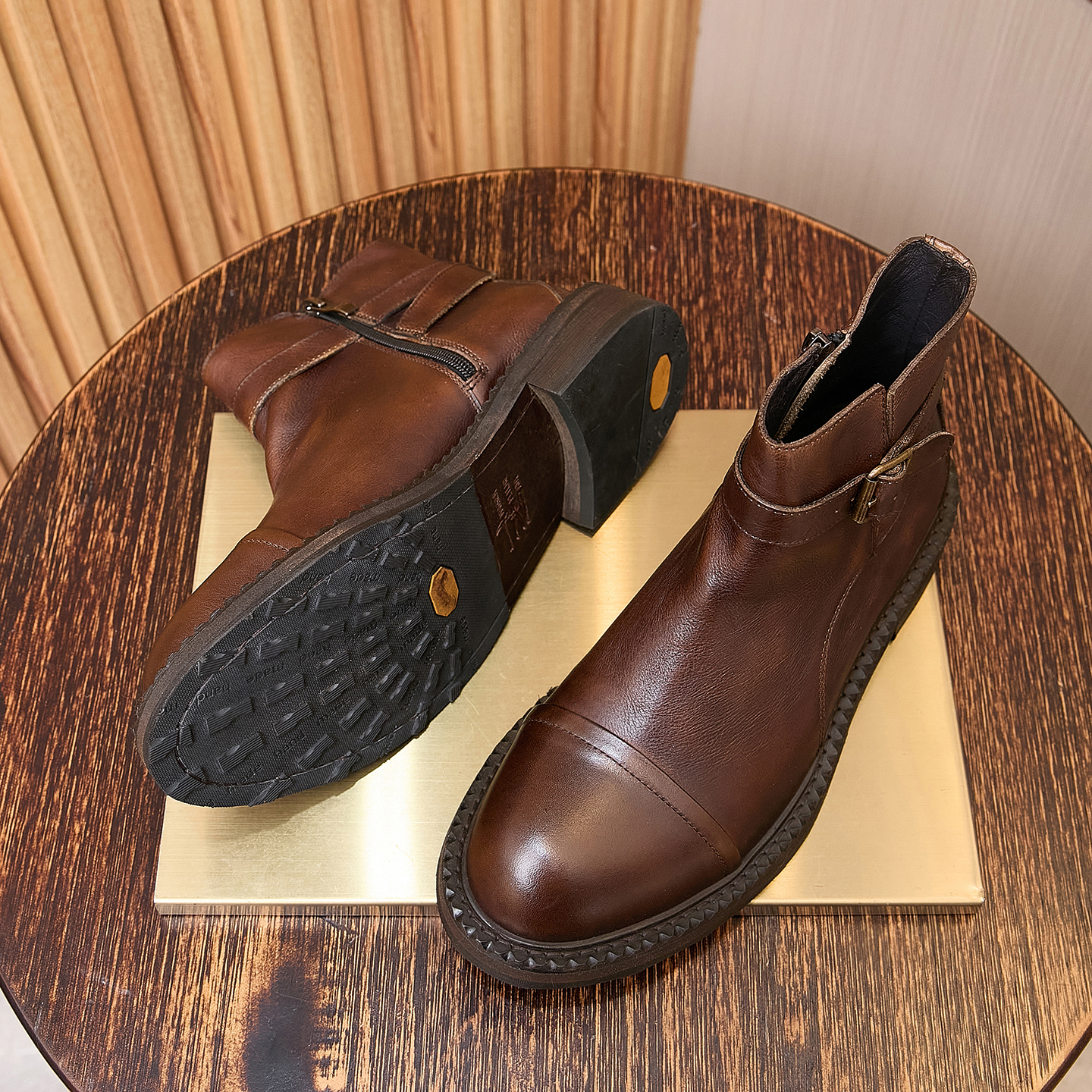 切尔西靴男高帮英伦复古真皮短靴软皮靴子冬季保暖加绒中帮马丁靴