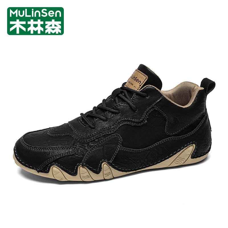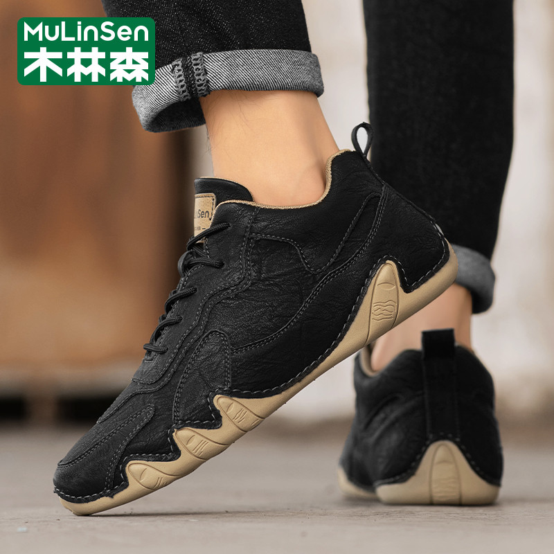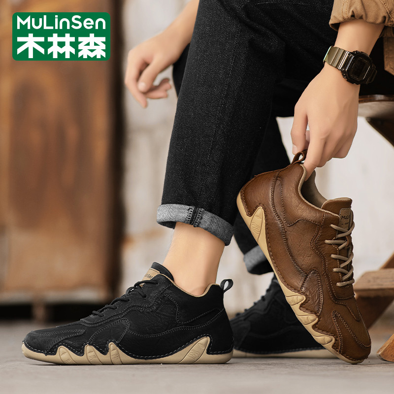 木林森男鞋2026年新款春季男士休闲运动登山软底豆豆马丁工装皮鞋