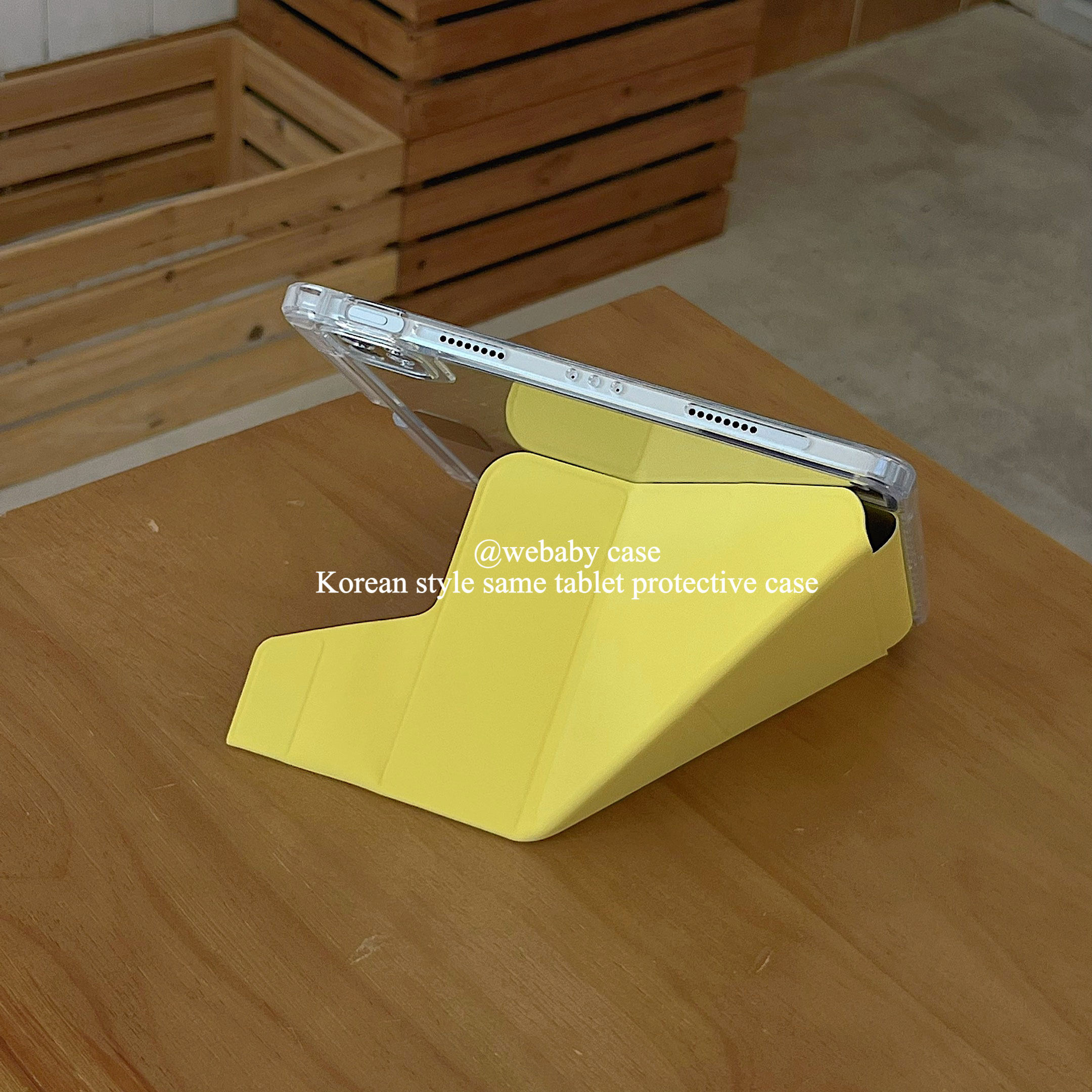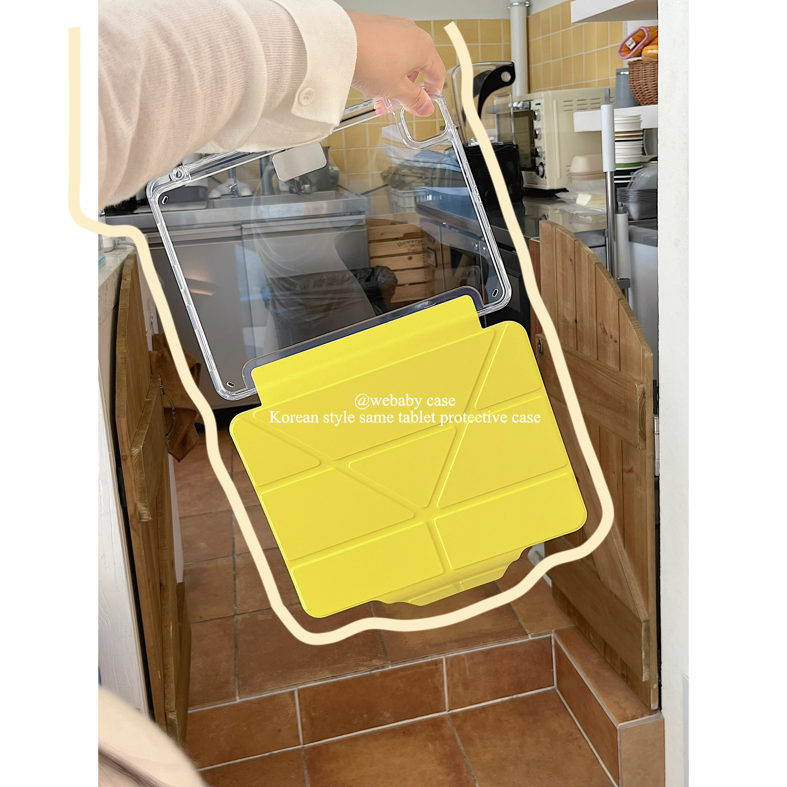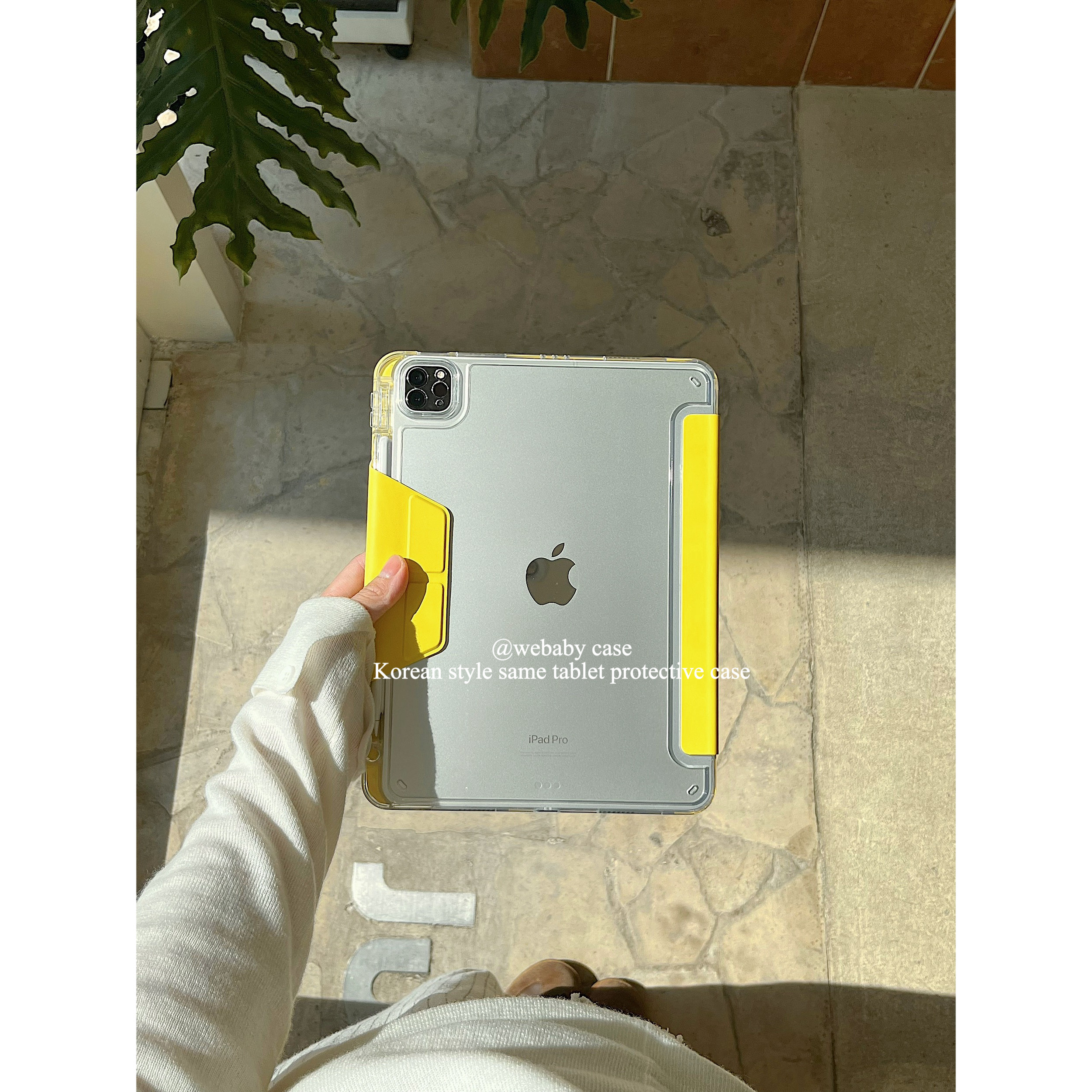 webaby「首尔甜品~柠檬黄」ipad y+3折平板亚克力pro11/a16保护壳平板10代/9.7/10.2寸air10.9翻盖/笔槽mini