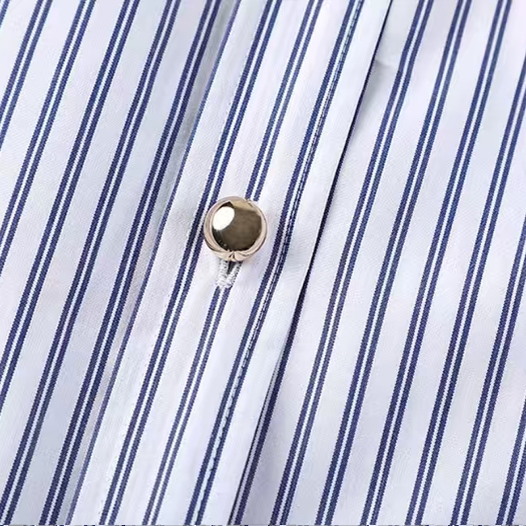 女装棉质蓝色条纹短款长袖衬衫