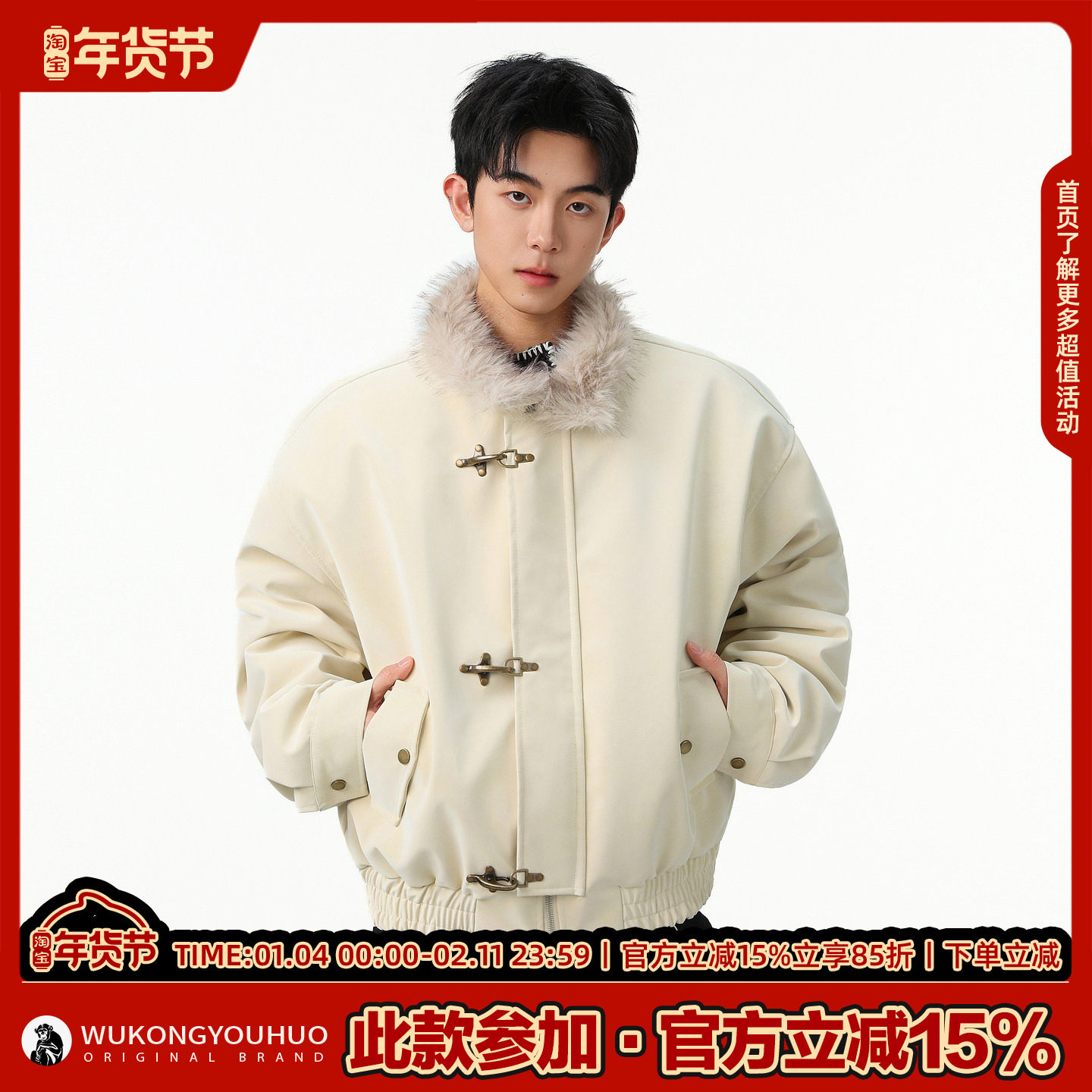 悟空有货美式潮牌座山雕毛领加厚棉服男冬季复古情侣保暖棉衣外套