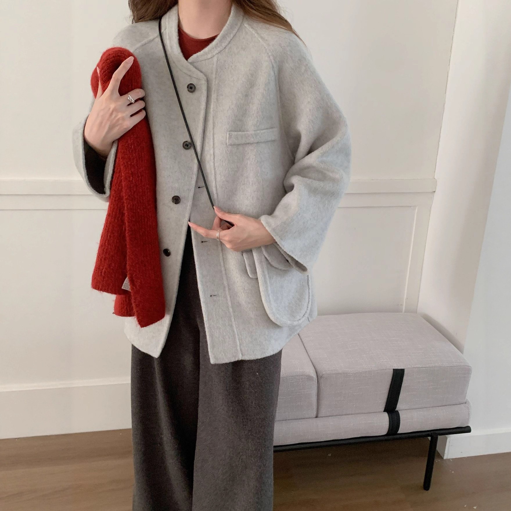 2025秋冬新款双面羊绒大衣女短款小香风韩版宽松小个子羊毛呢外套