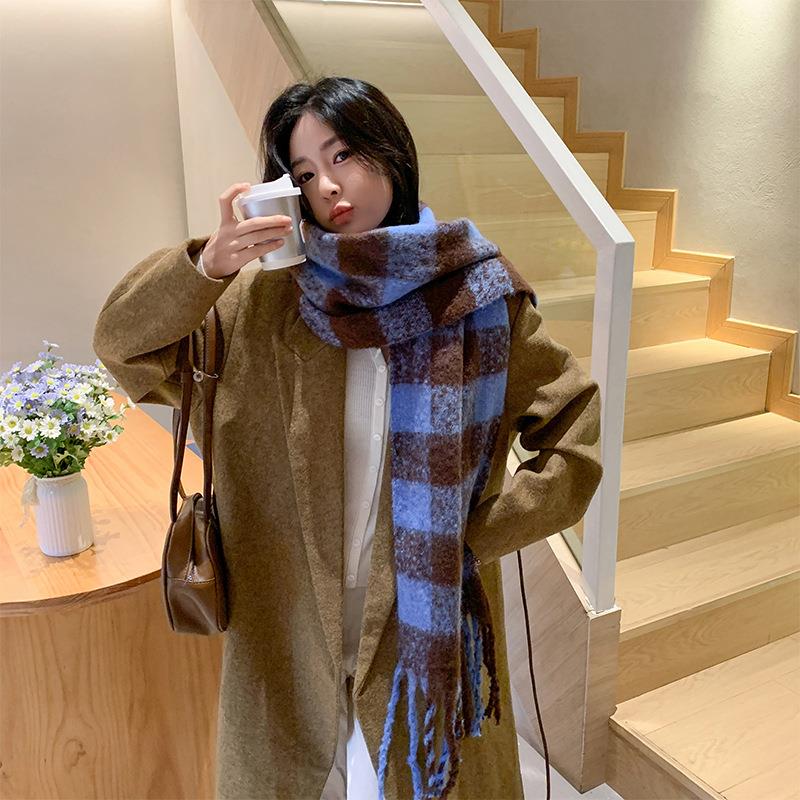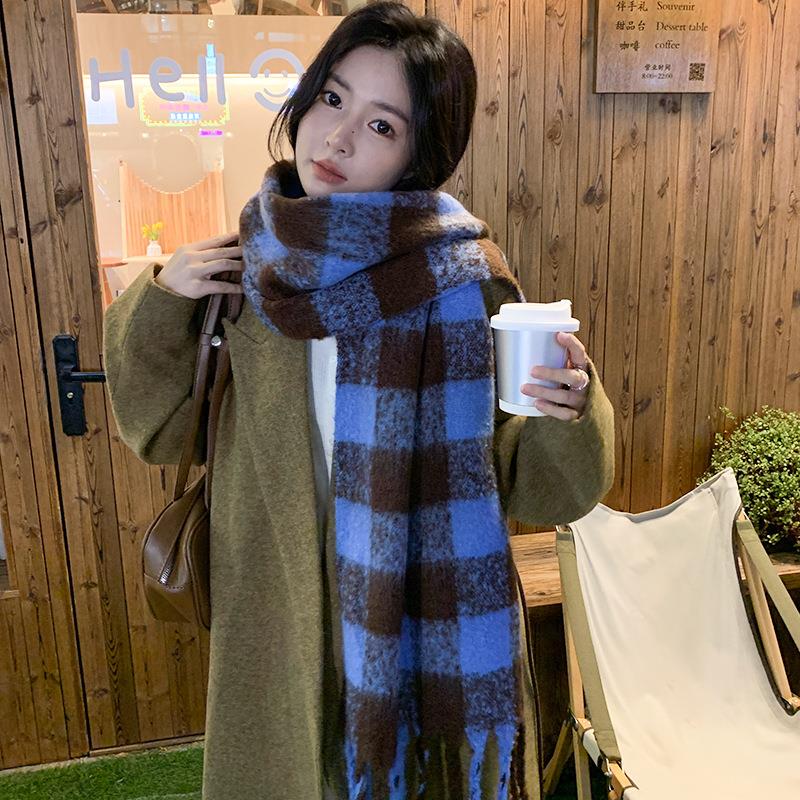 2025新款格子围巾女秋冬保暖软糯加厚围脖学生两用品质感披肩批发