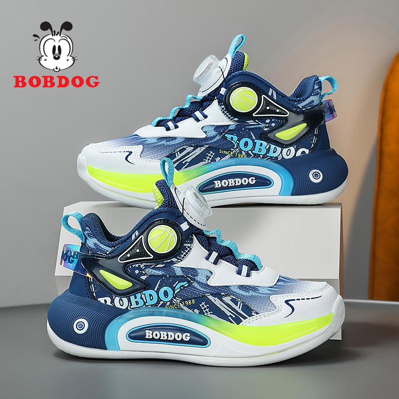 巴布豆男童鞋子网面透气中大童春秋篮球鞋跑步学生男孩儿童运动鞋