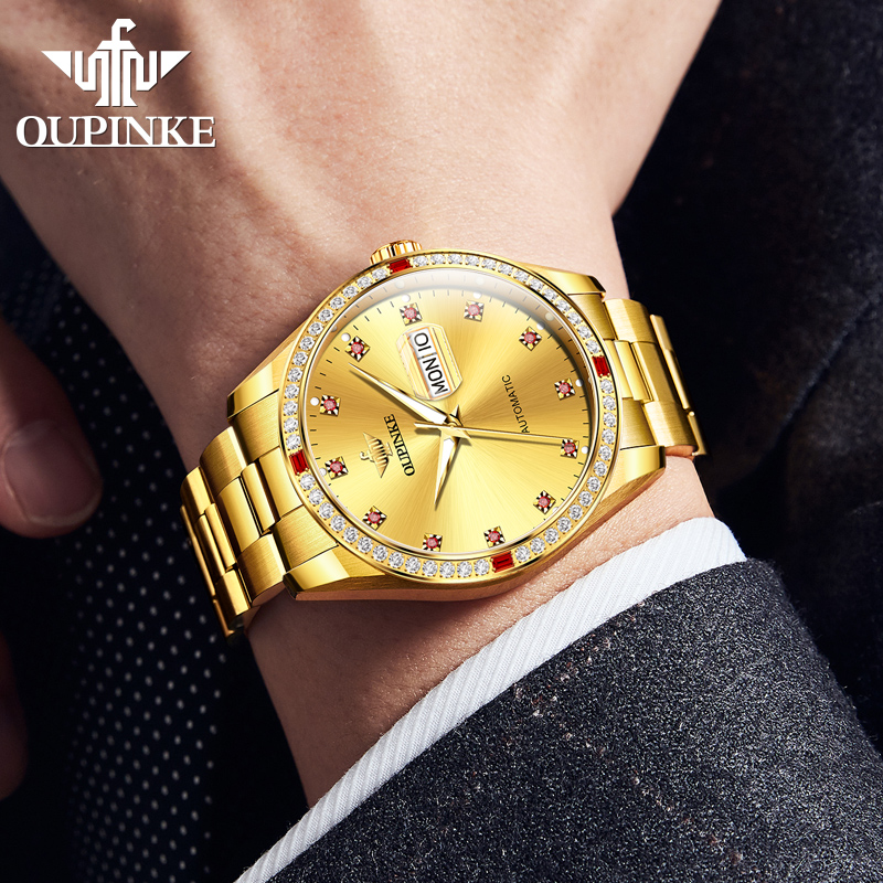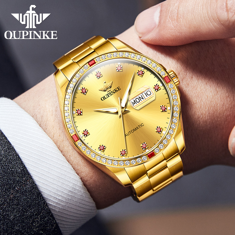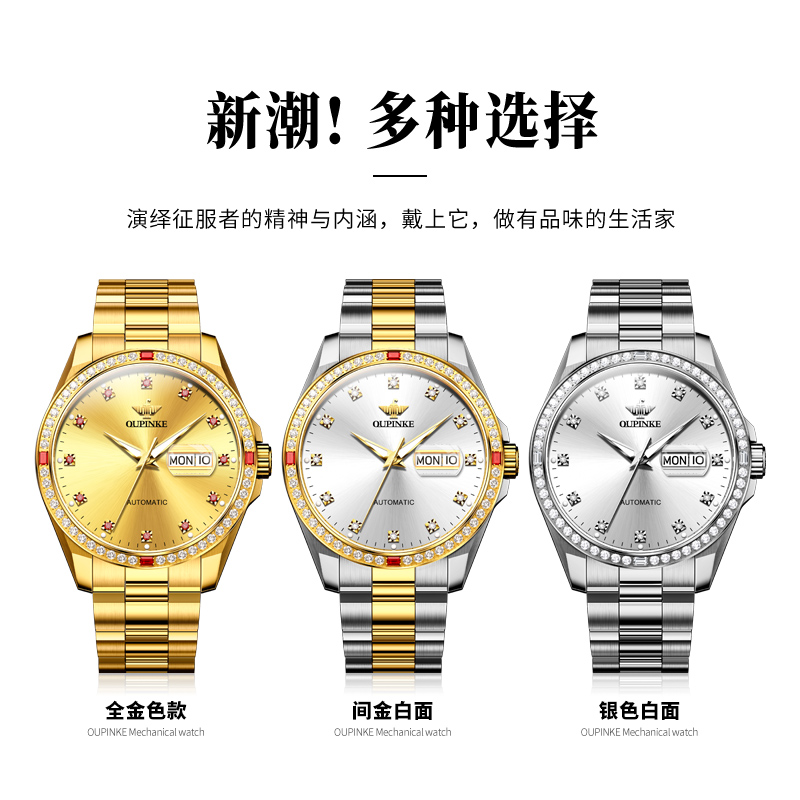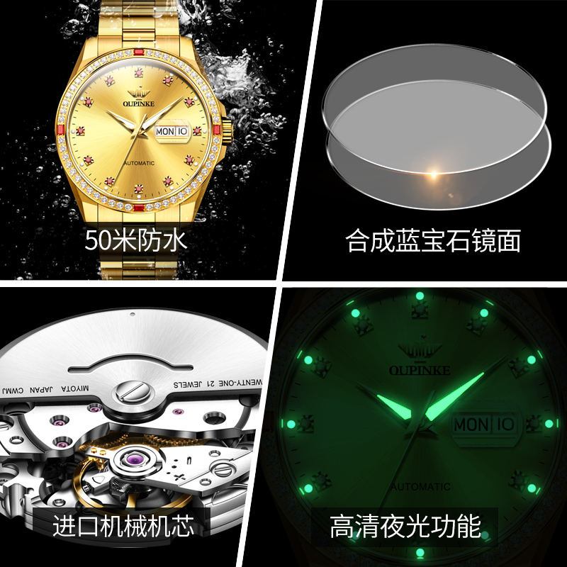 正品名牌男士手表男款机械表瑞士18k金色全自动防水钢带品牌十大