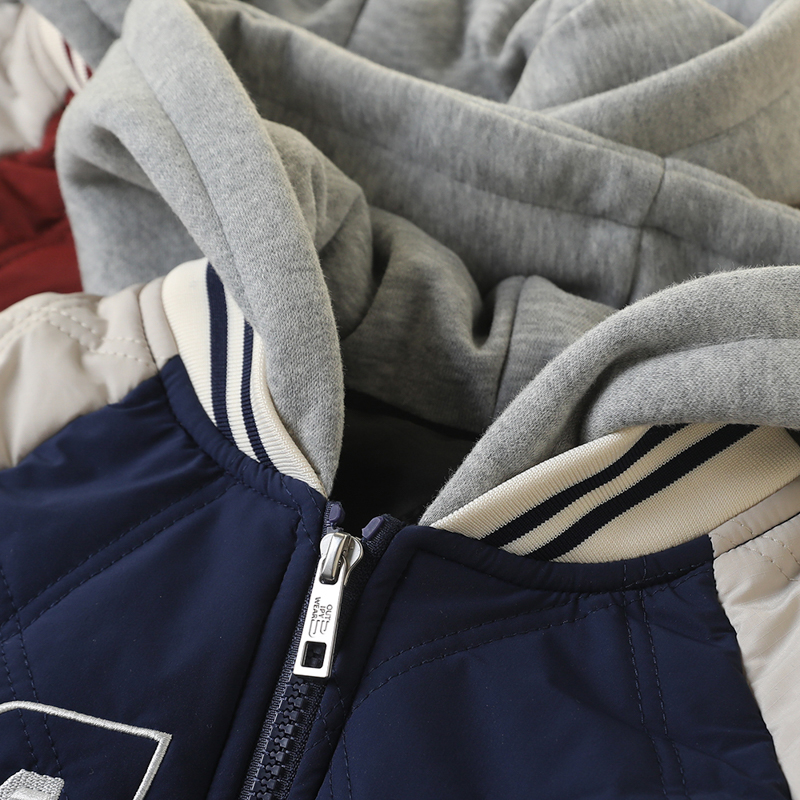 男童夹棉外套秋冬款儿童装绗棉加厚中大童男孩拼色连帽棒球服